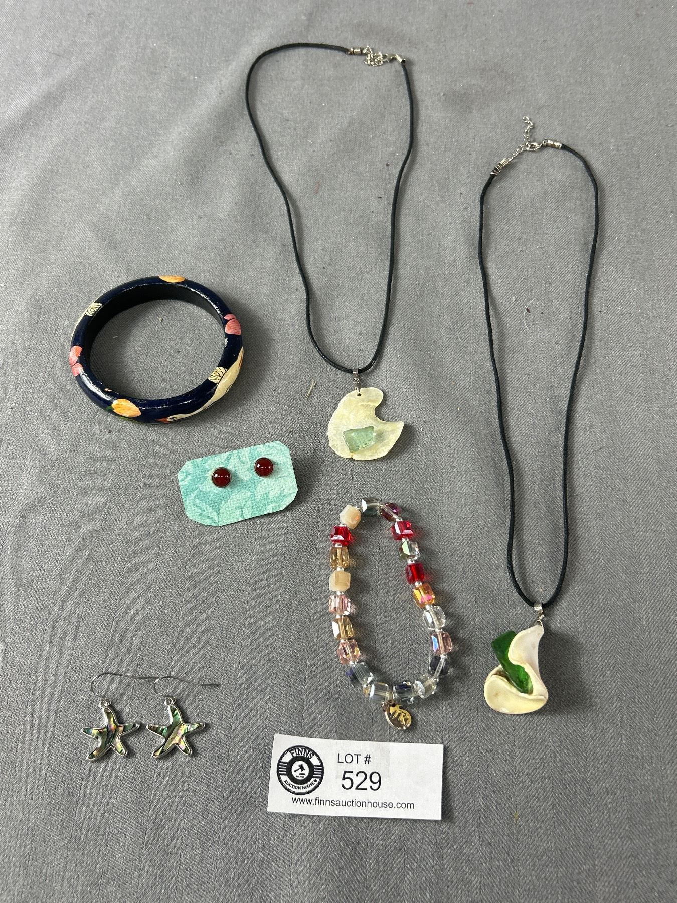 Lot of Vintage Jewelry Including Nice Abalone Star Earrings