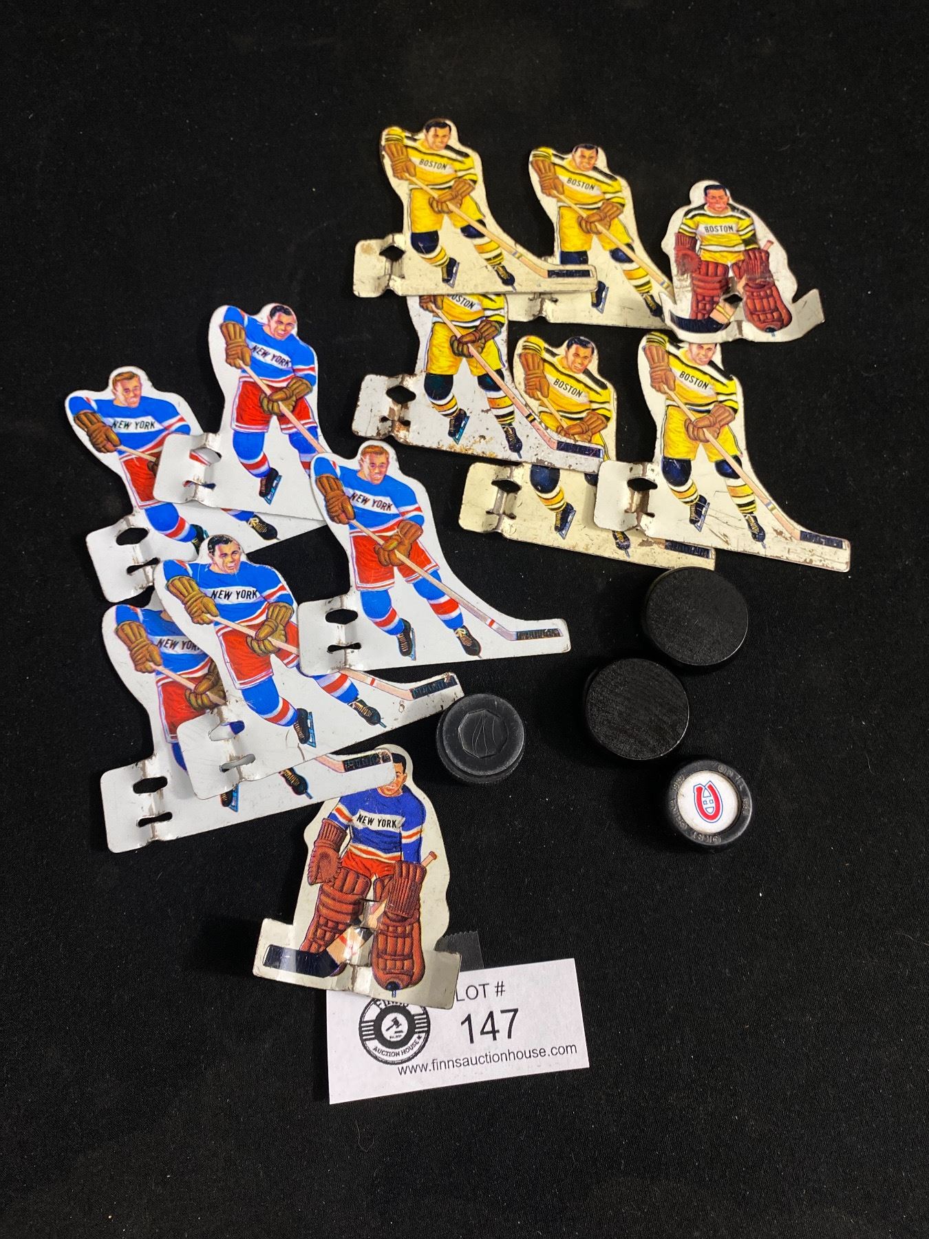 Lot of Vintage Metal Hockey Players and Pocks for Table Top Game