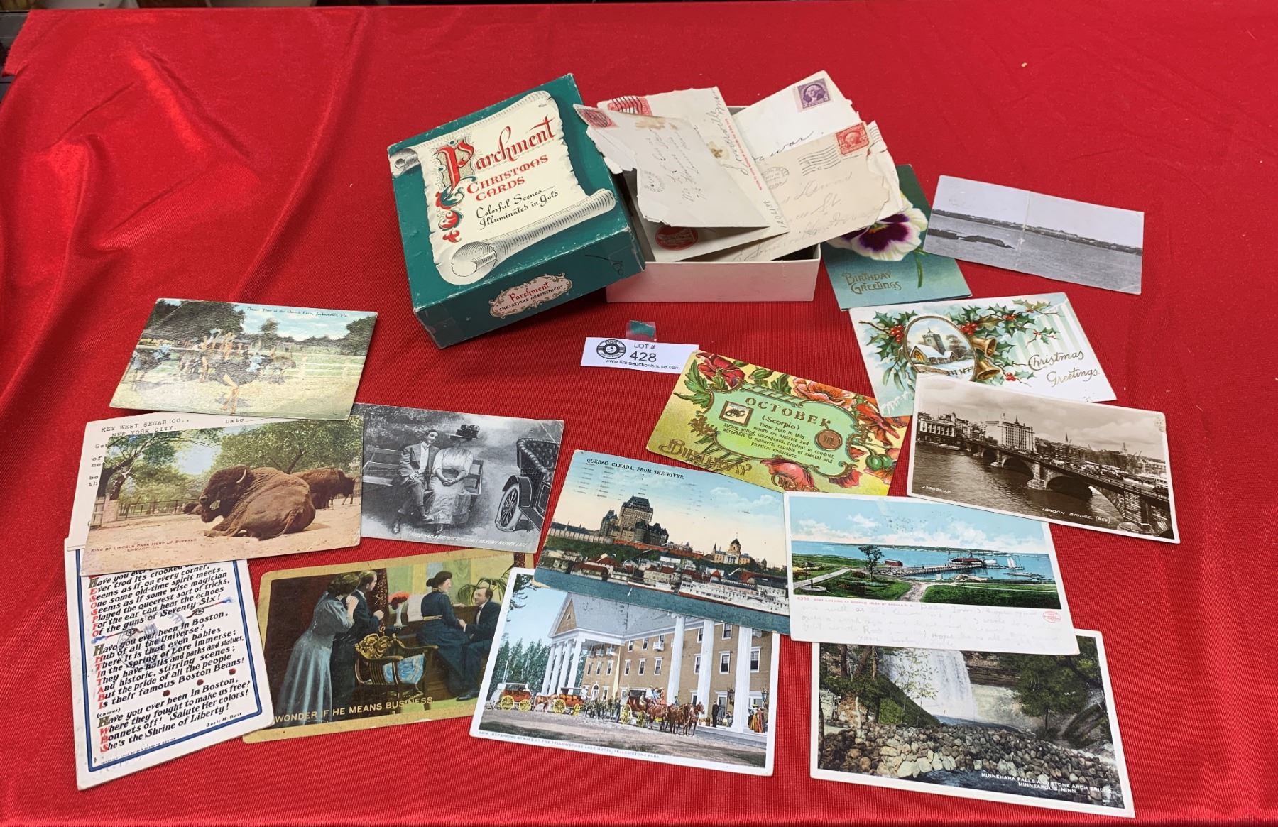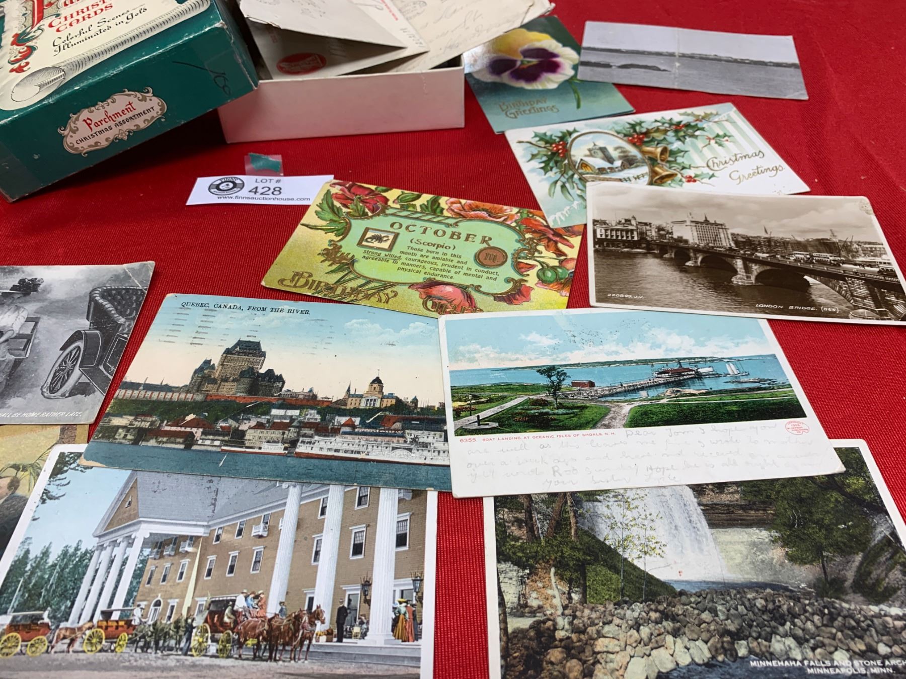 Lot of Vintage Postcards and Envelopes in an Old Christmas Card Box