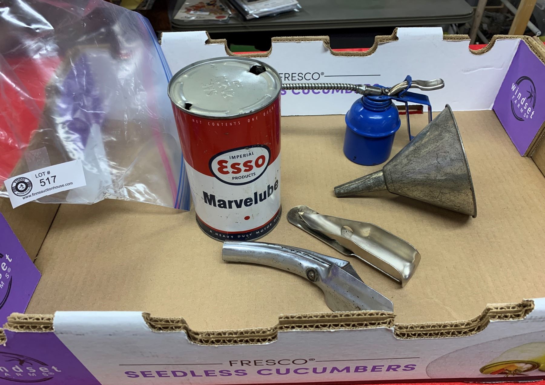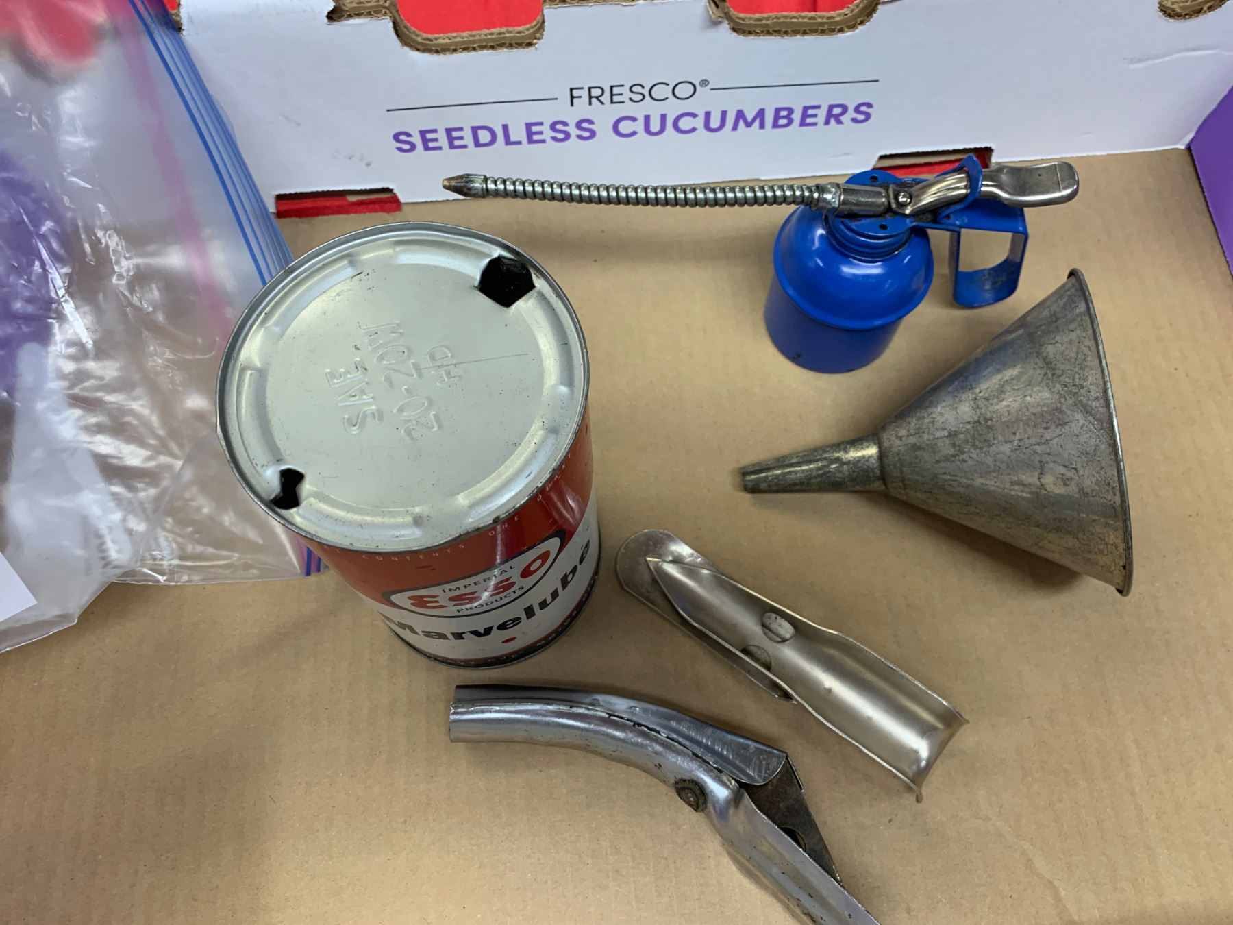 Lot of Vintage oilers and funnels + Esso Oil can