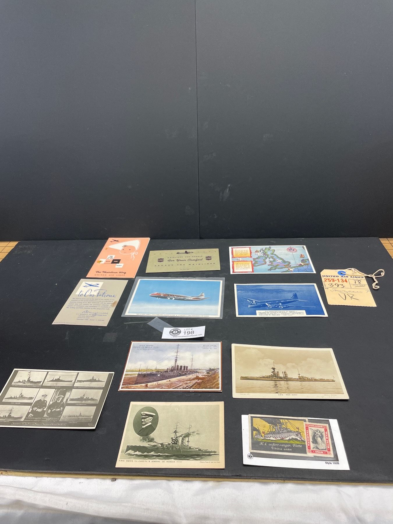 Lot of WW2 WWII Postcards Airline Tags Etc