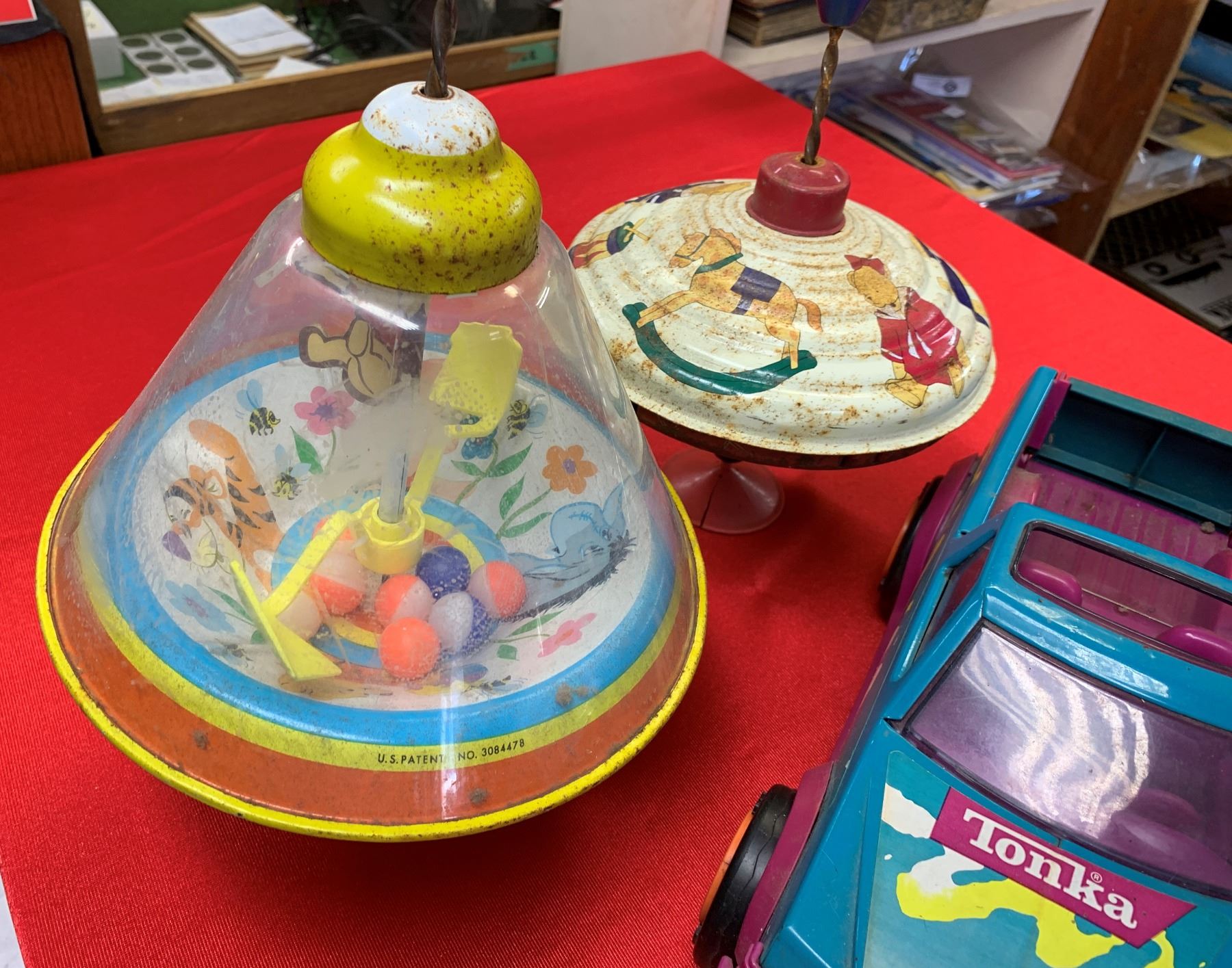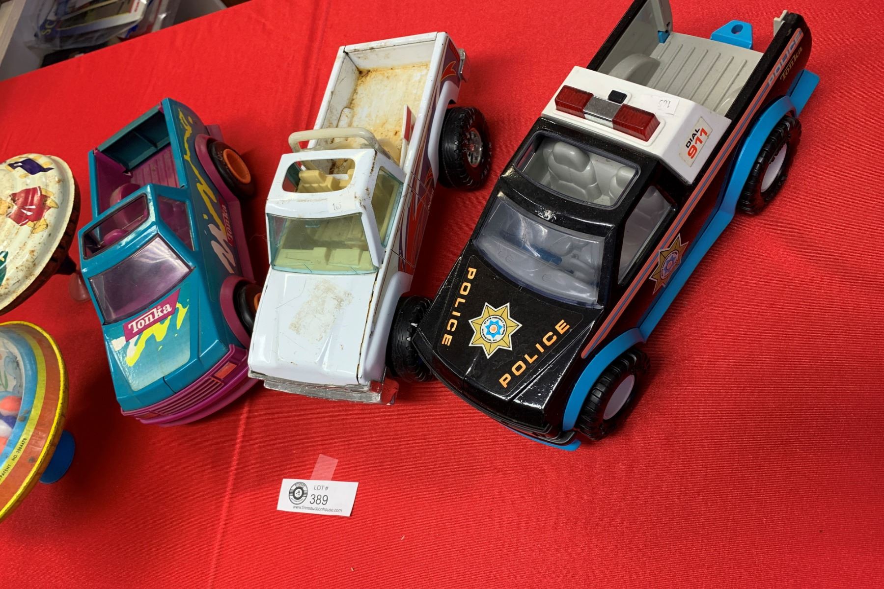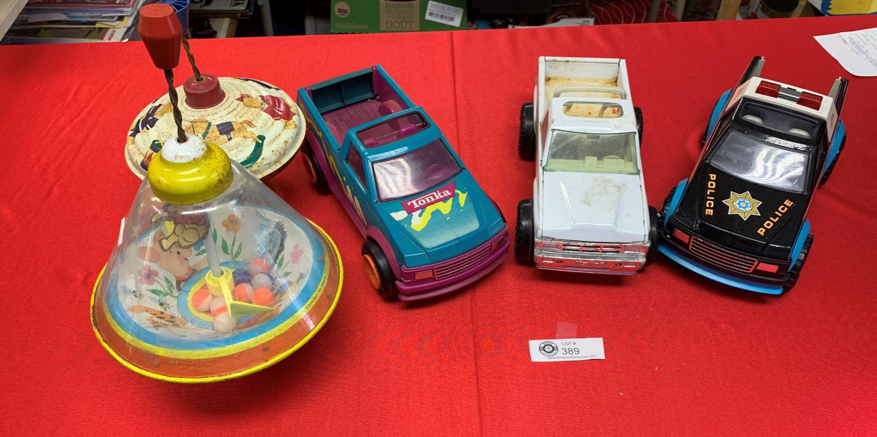 Lot of five vintage toys tonka trucks and tops