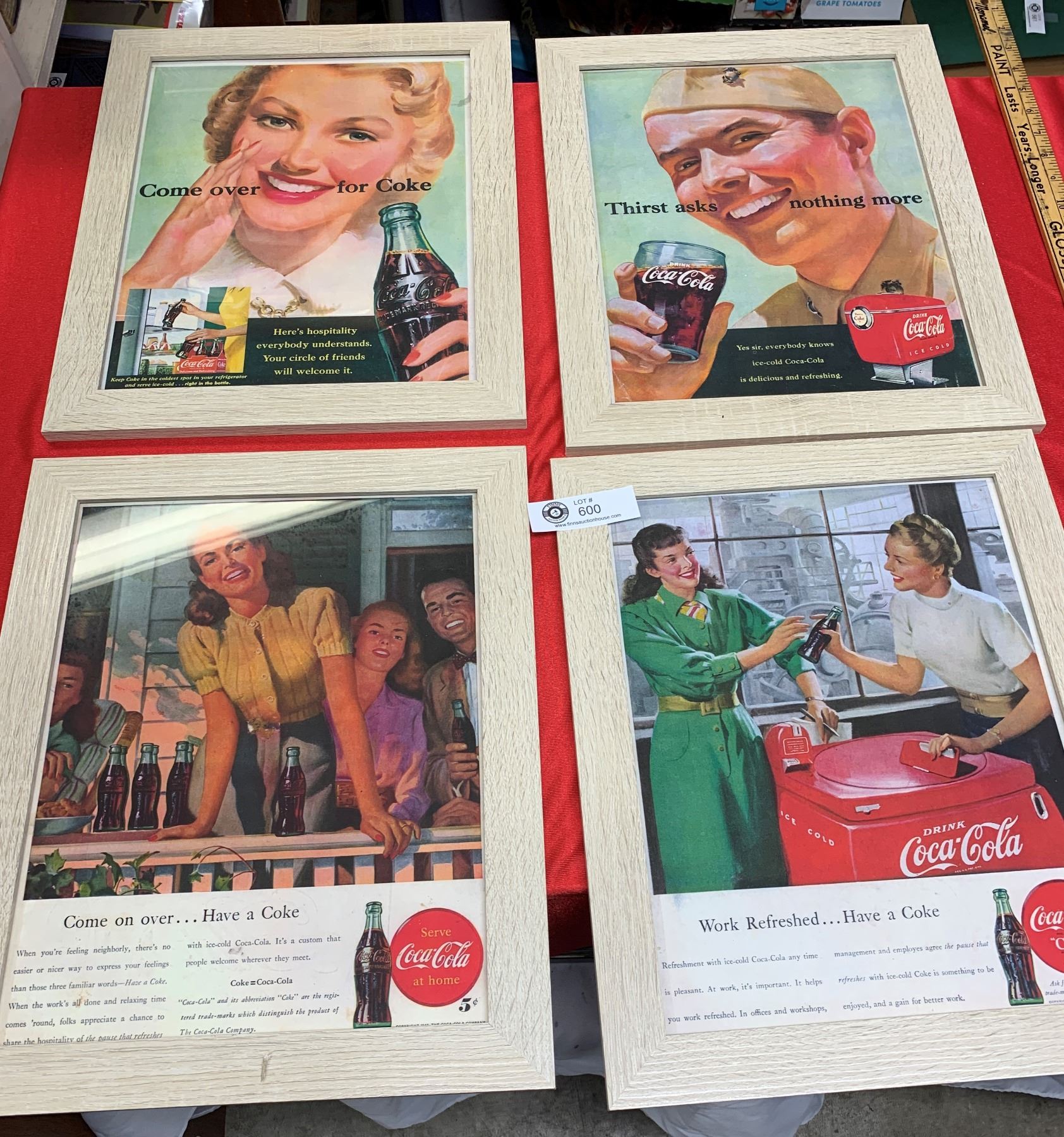 Lot of four 13 1/2" x 16 1/2" reprint advertisements in frames
