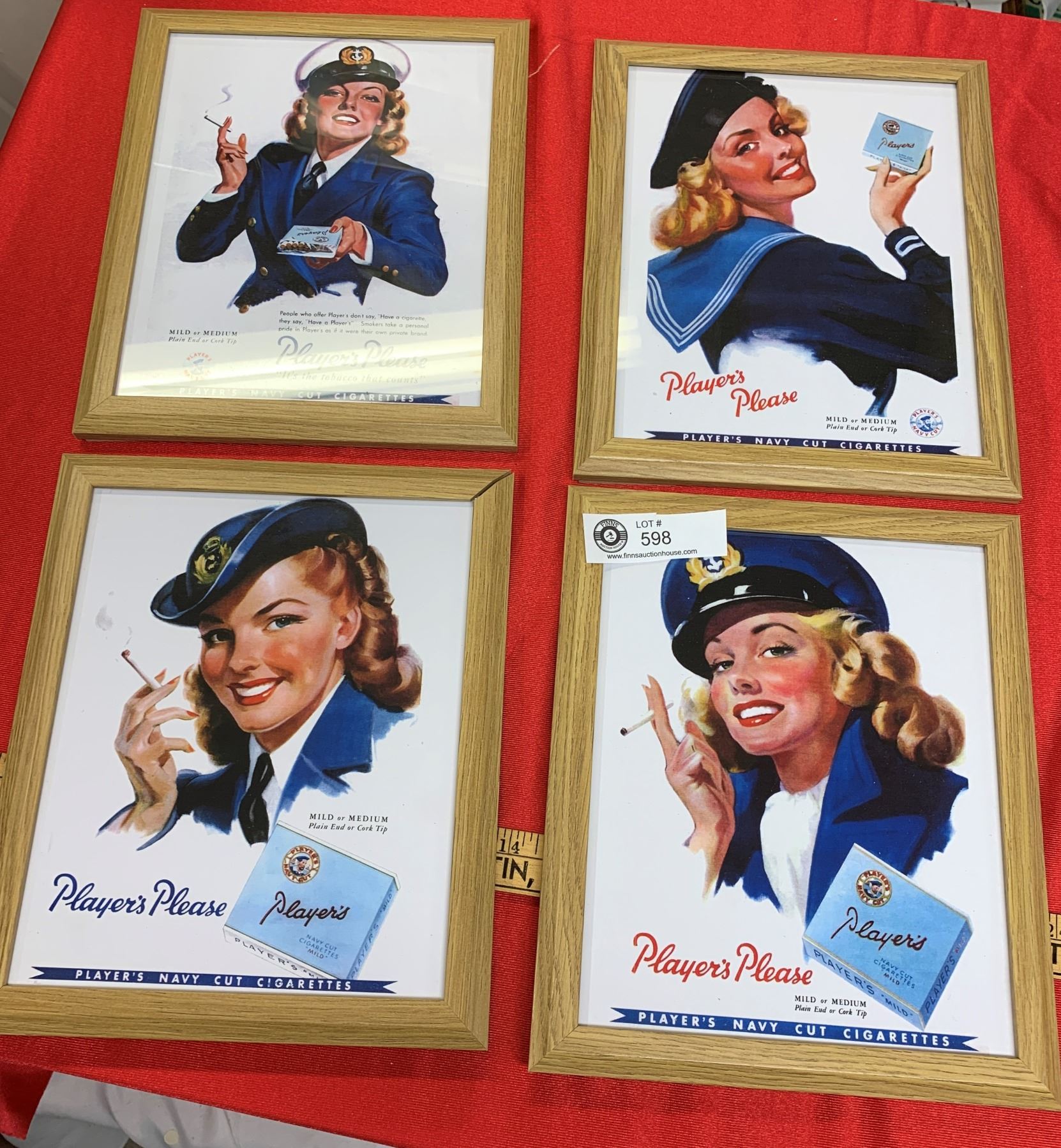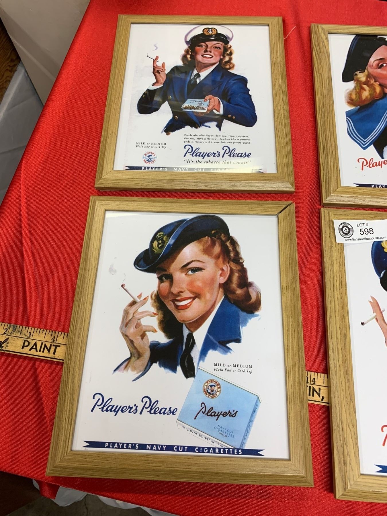 Lot of four 9 x 11 picture frames with reprint Players Tobacco advertisements