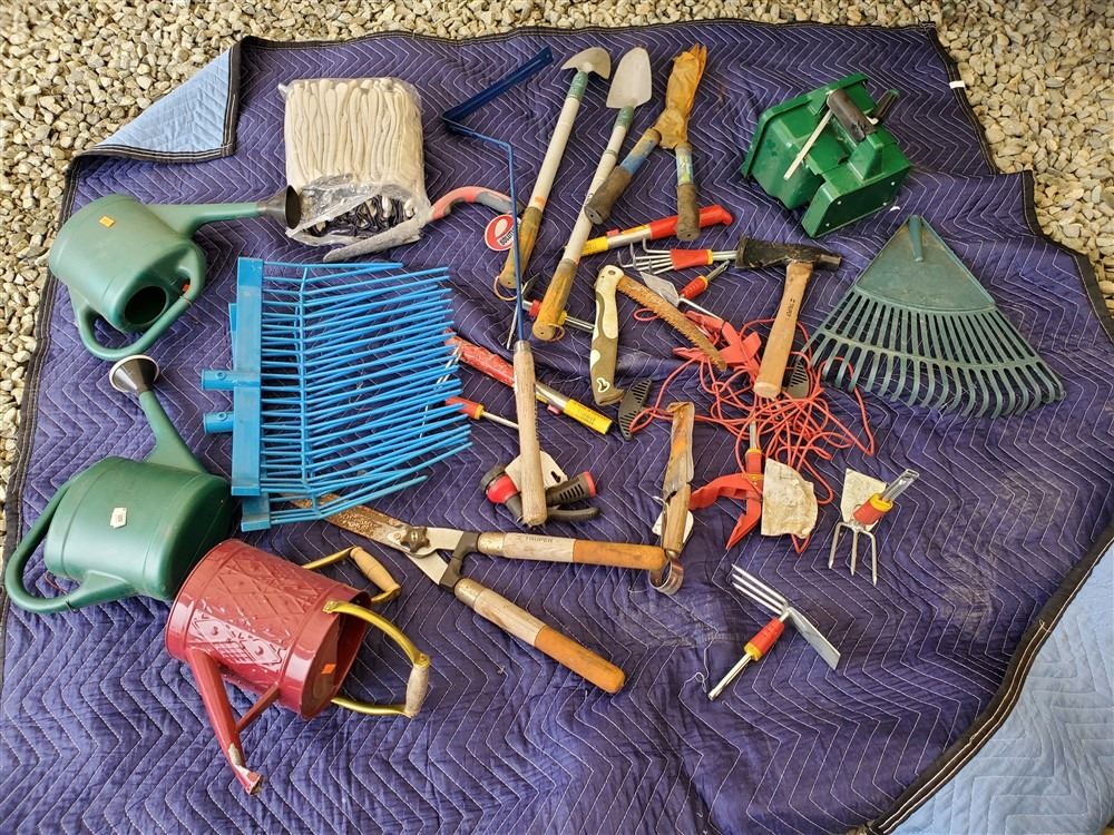 Lot of garden tools "Red Water Can" - Most Items have not been tested - 17% Buyer Fee. Payment Processed through Live Auction World ( Visa or Master Card ) pick up Saturday, or Tuesday