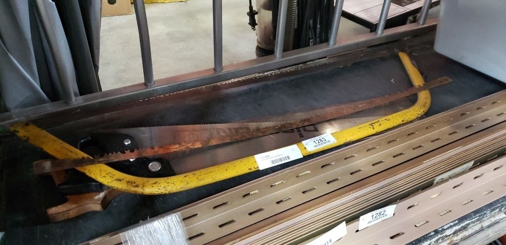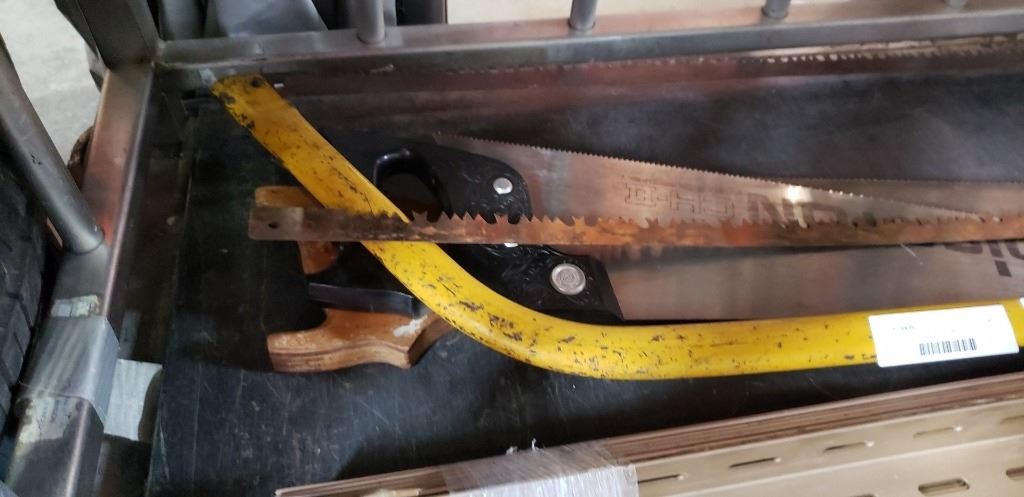 Lot of hand saws and bow saw