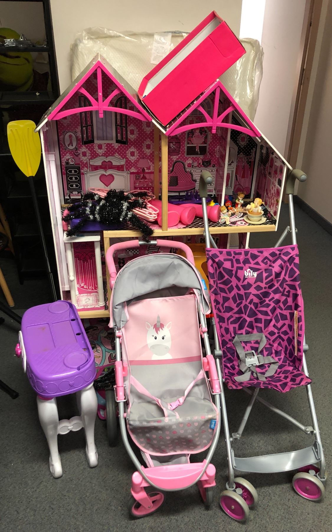 Lot of misc items - doll house, baby strollers, toys, etc...