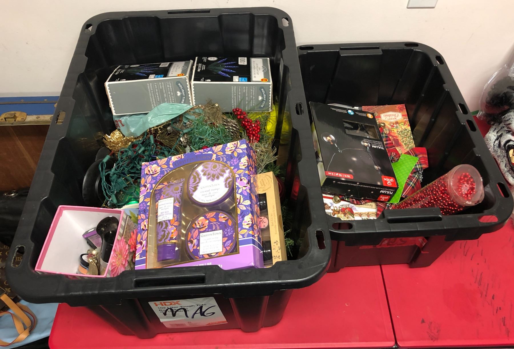 Lot of misc items including holiday lights, reef, bath collection kit, candle, body wash, etc...