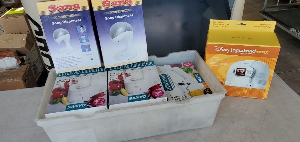 Lot of new Kitchen appliances, soap dispenser and Disney jam stand Max