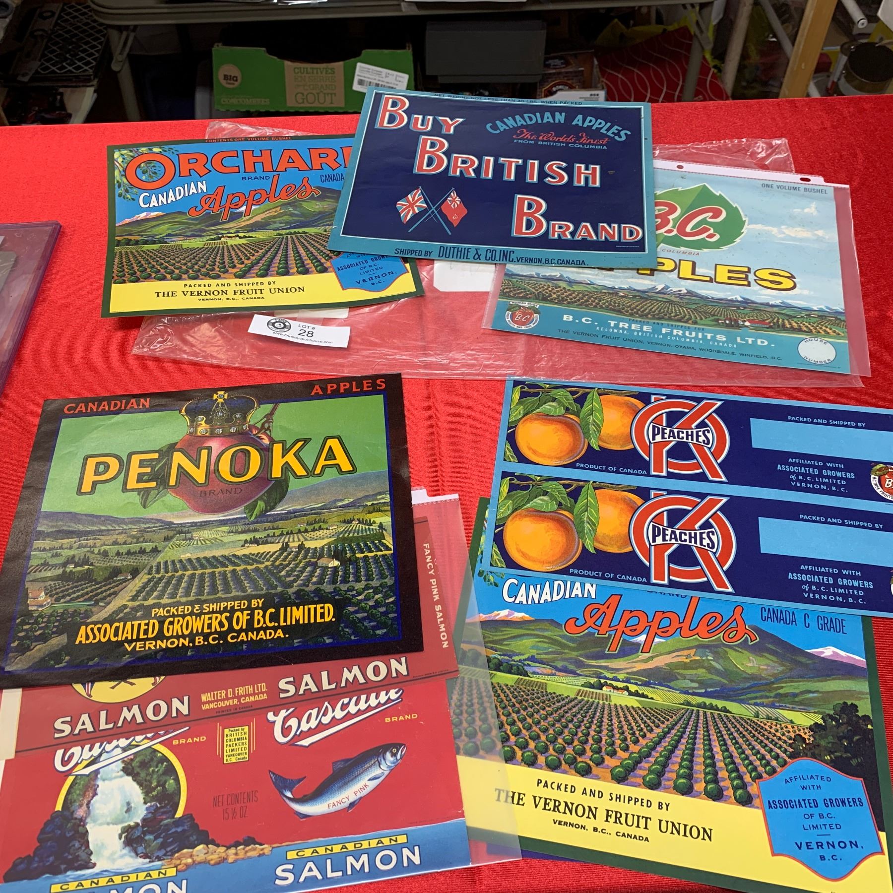 Lot of new old stock B.C. fruit labels for crates wooden crates