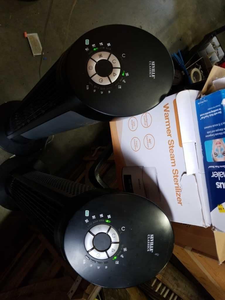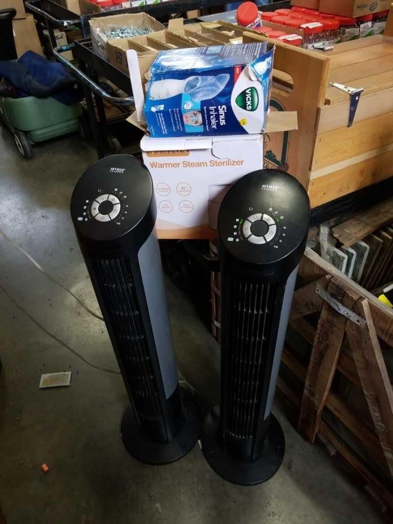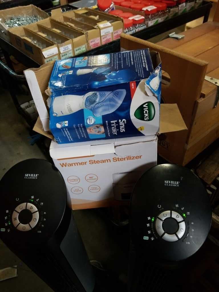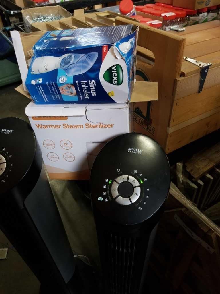 Lot of store return, Seville Classics tower fans, sinus inhaler and sterilizer