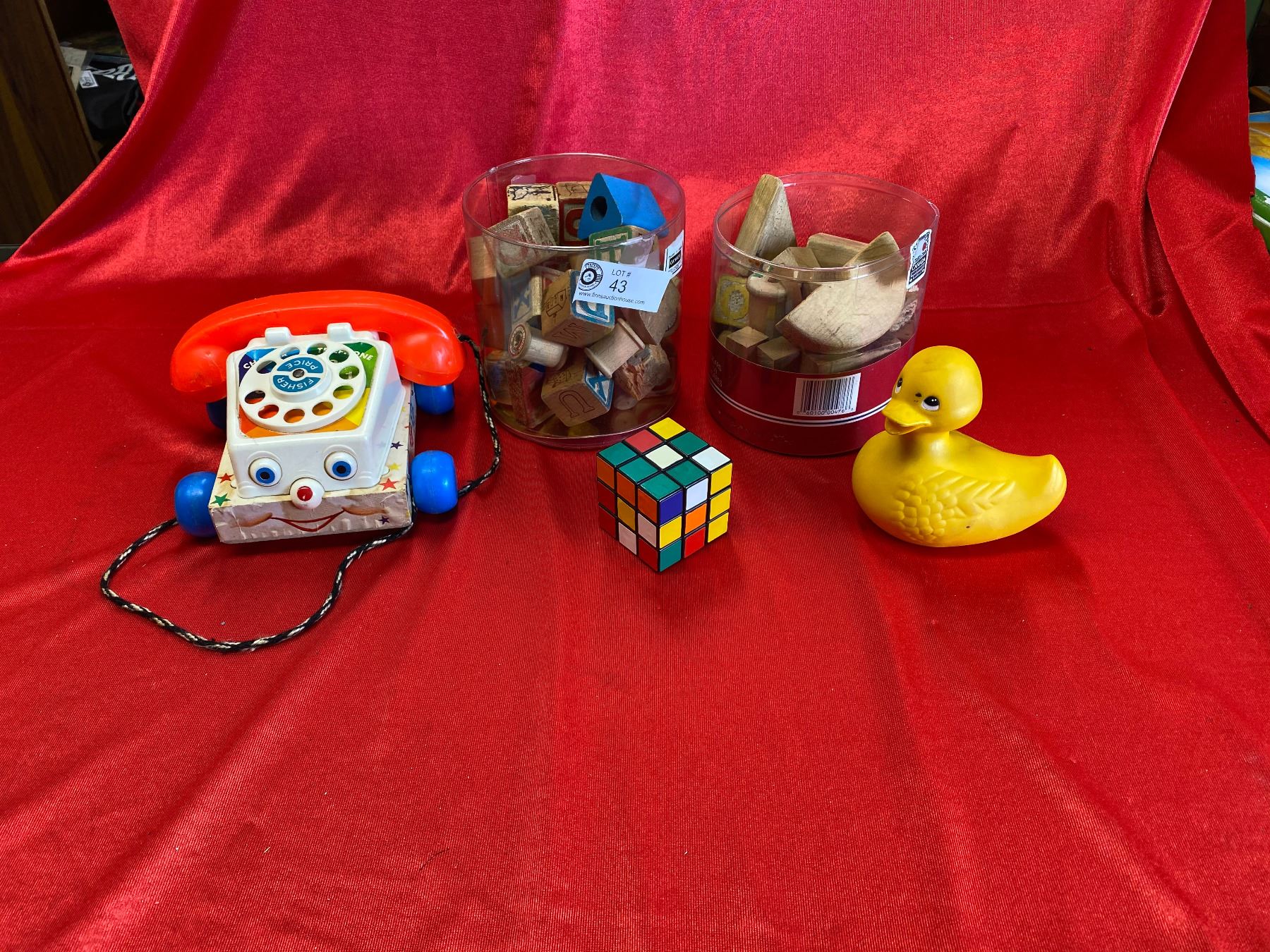 Lot of vintage Toys Fischer Price Wooden Blocks Etc