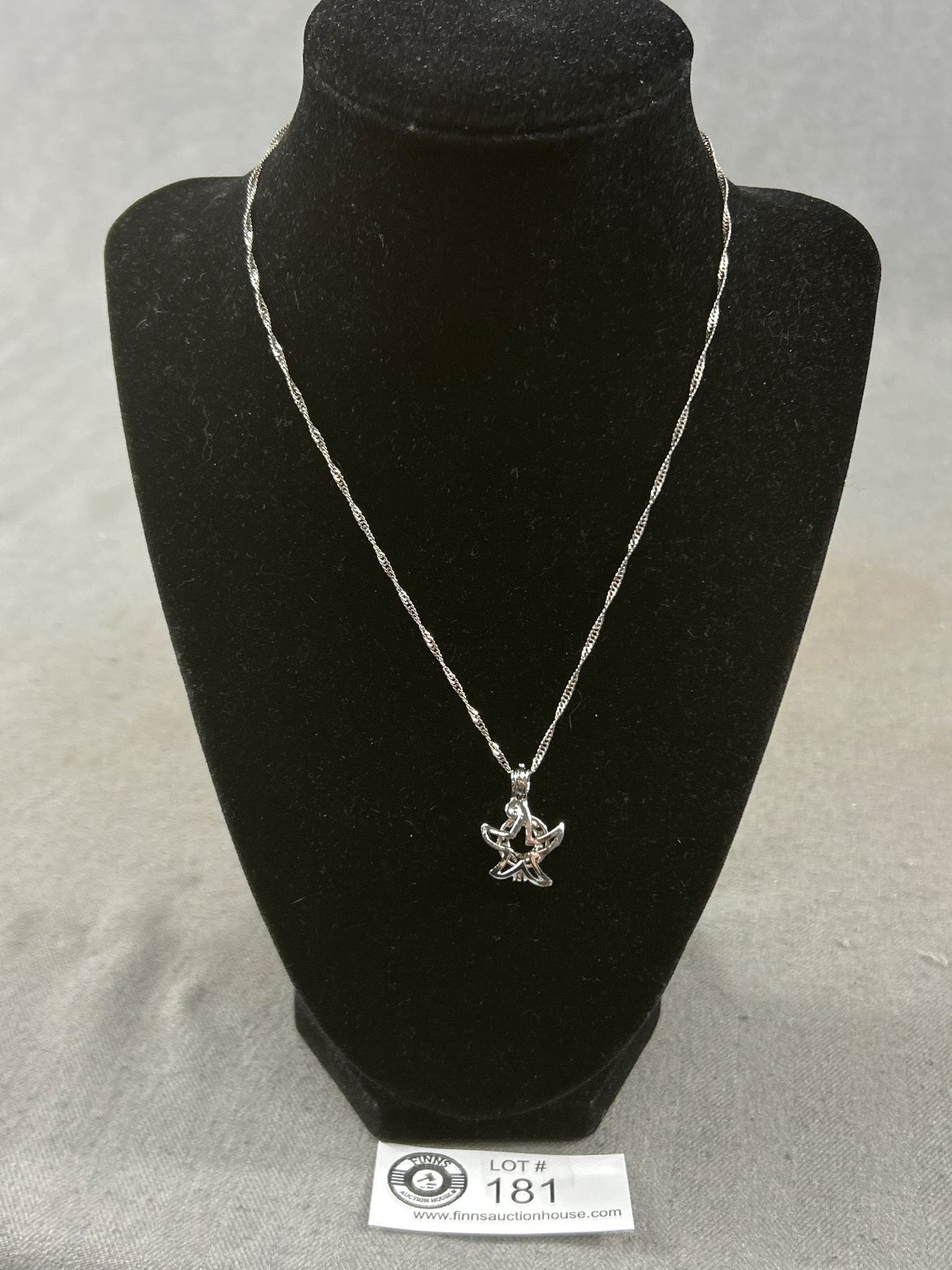 Lovely 18K White Gold Plated Chain w/ Pendant Necklace, Markded 18K G.P.