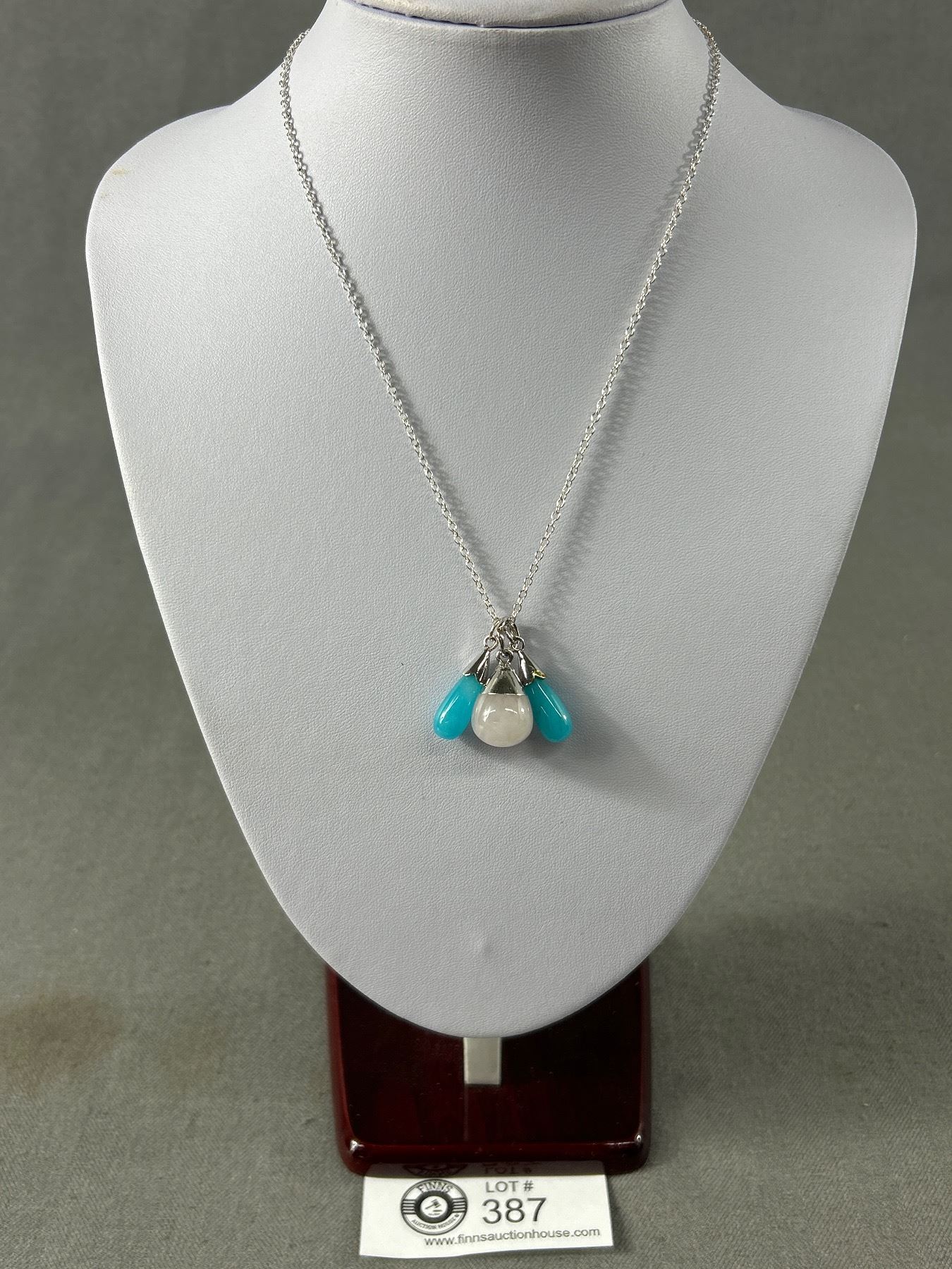 Lovely 3 Gem Stones Pendant w/ Chain Necklace
