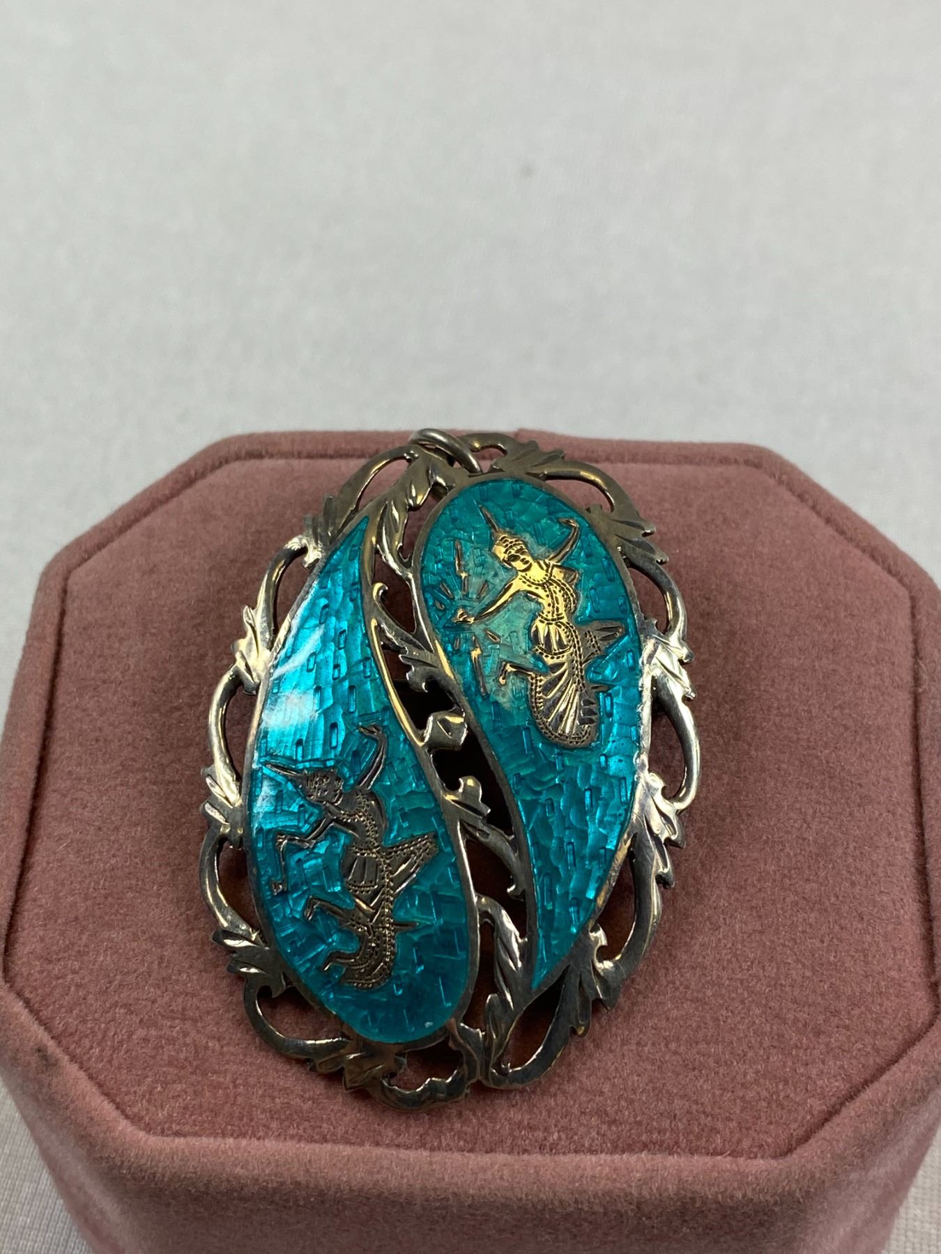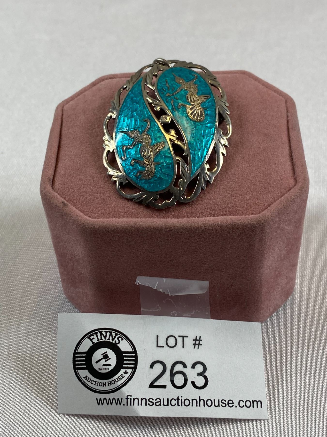 Lovely .925 Siam Blue Enamal Brooch/Pendant 13.2 gr