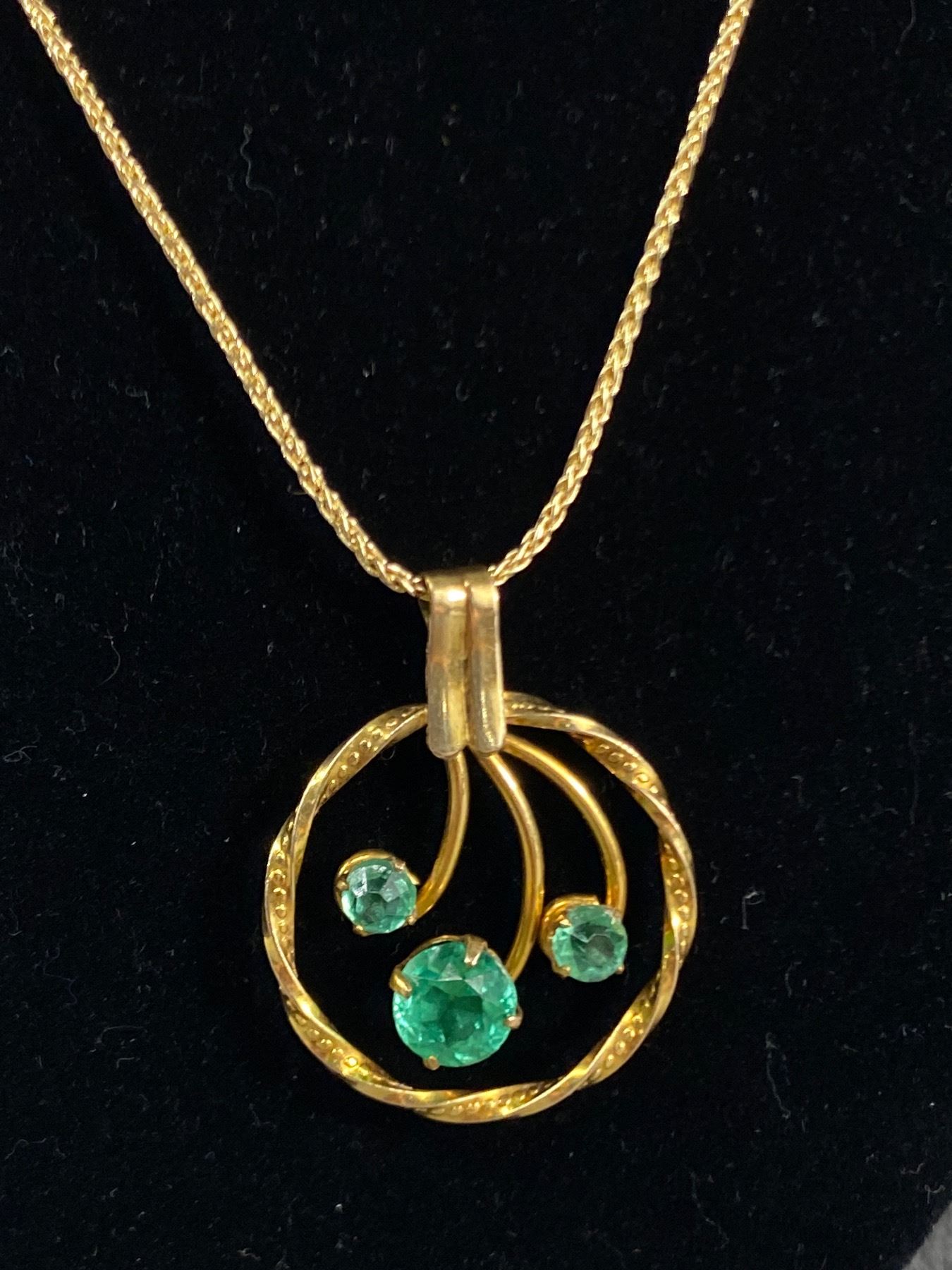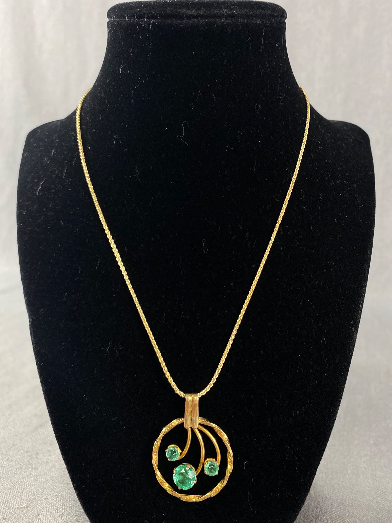 Lovely Gold Plated w/ Green Stones Pendant w/ Chain Necklace