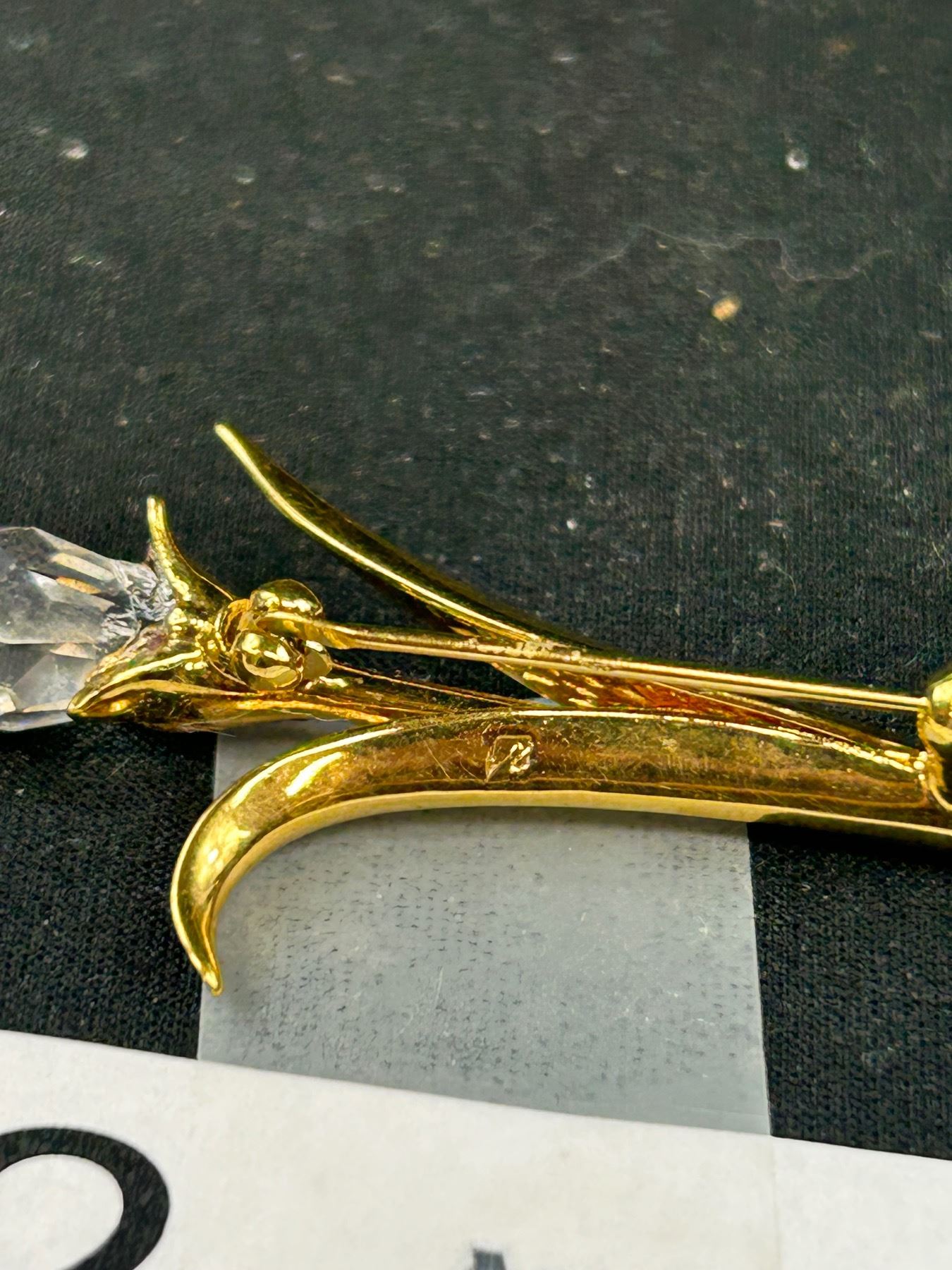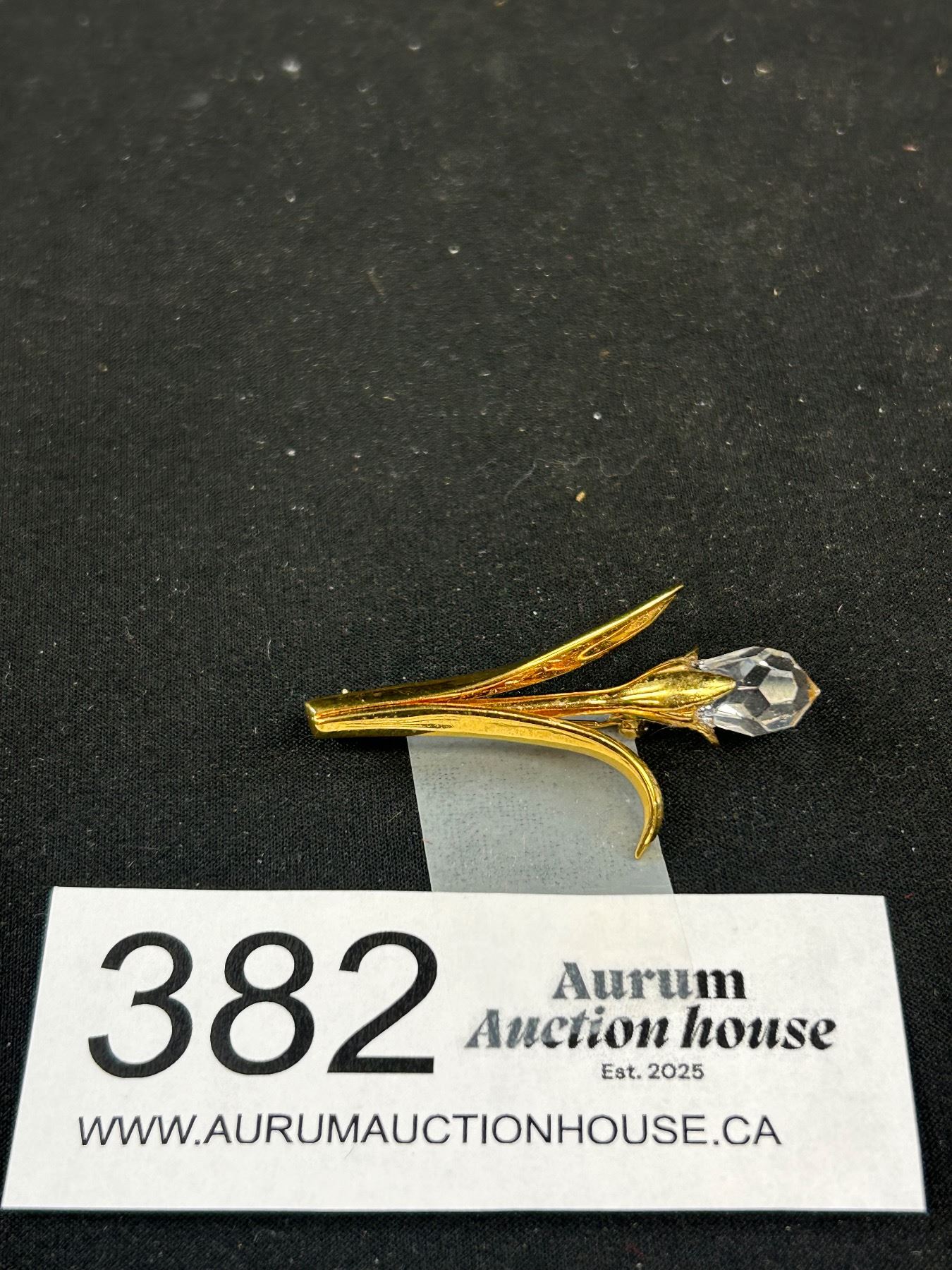 Lovely Gold Swarovsky Brooch, Marked w/ Swan