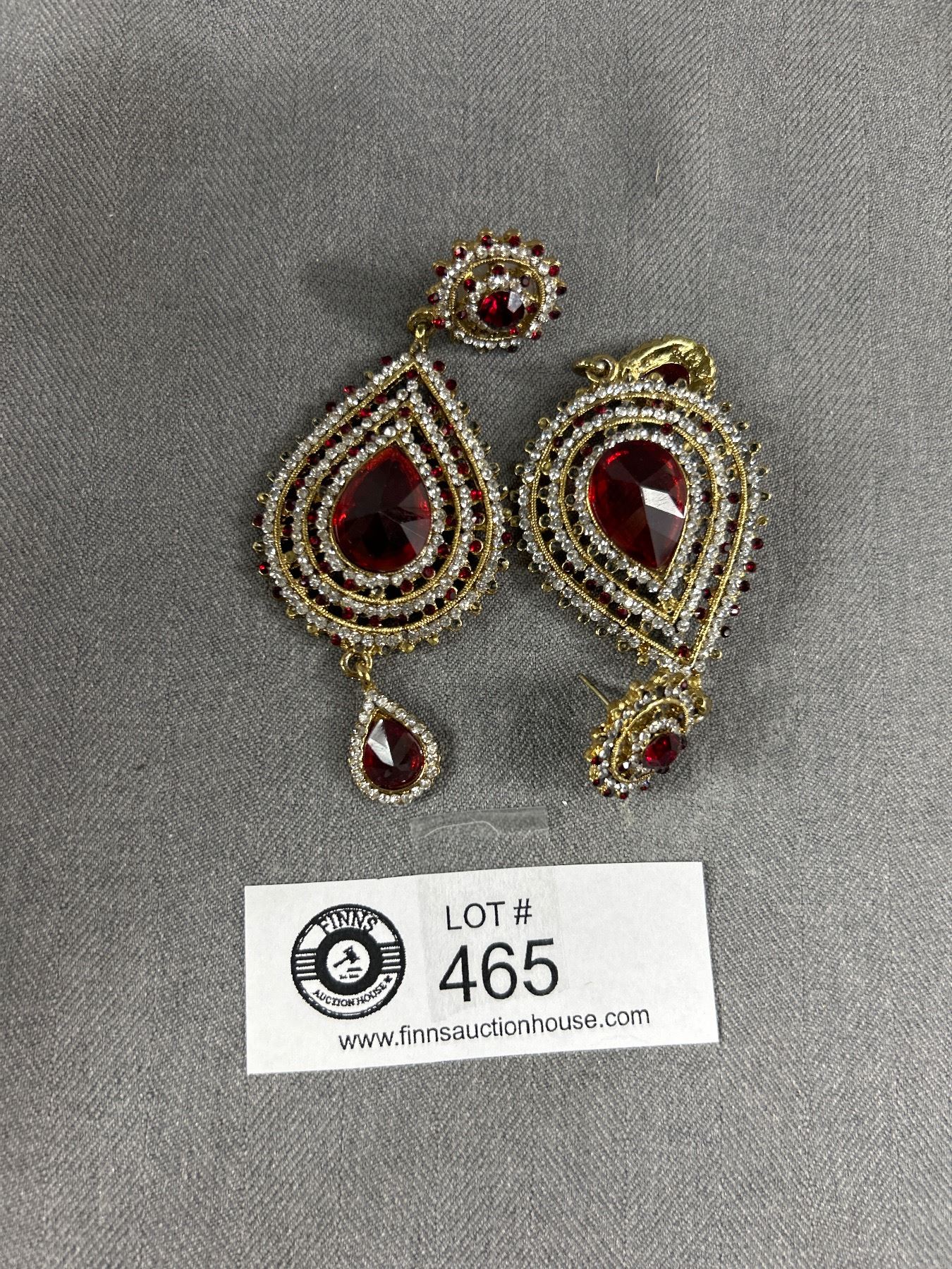 Lovely Pair of Red Glass Stones & Rhinestone Dangle Earrings