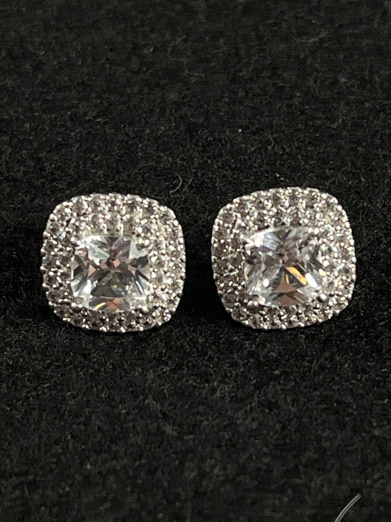 Lovely Pair of Sterling Silver with Cubic Zirconia Stones Stud Earrings Marked 925 Just Like New