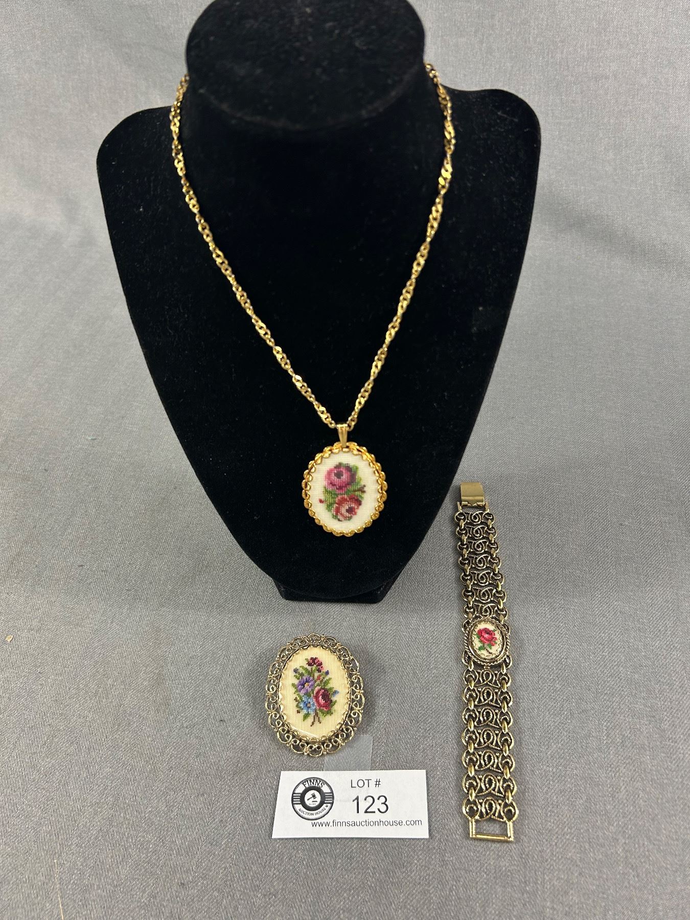 Lovely Petit Point Jewelry - Bracelet, Necklace & Brooch/Pendant