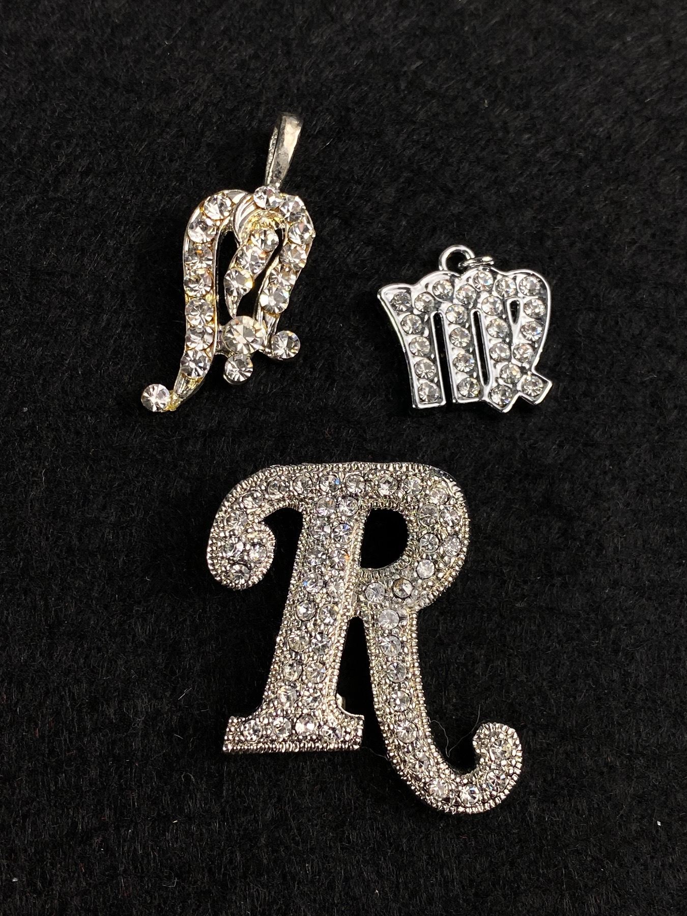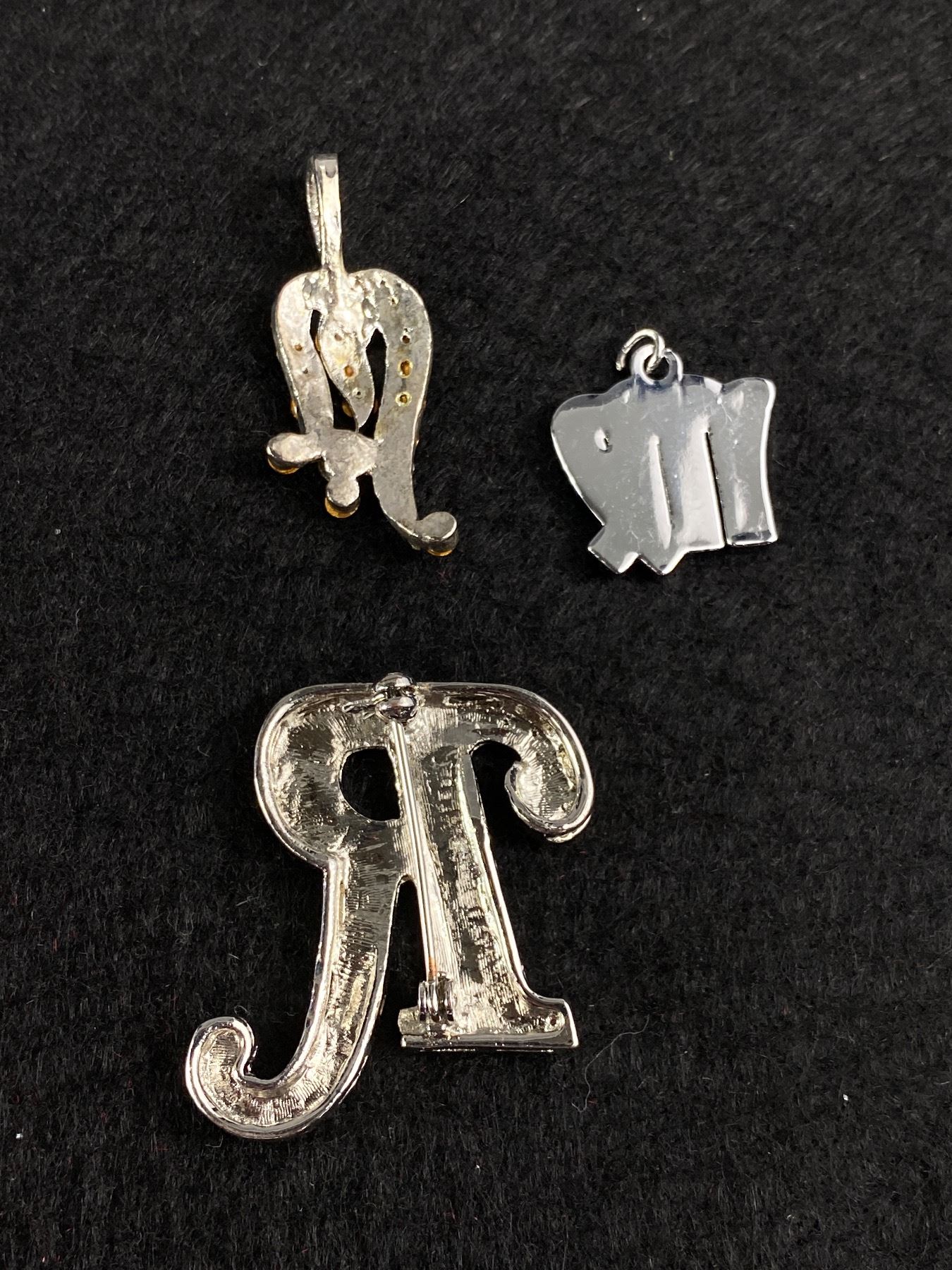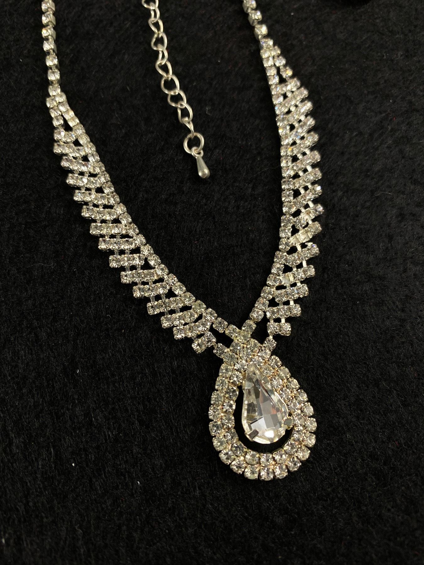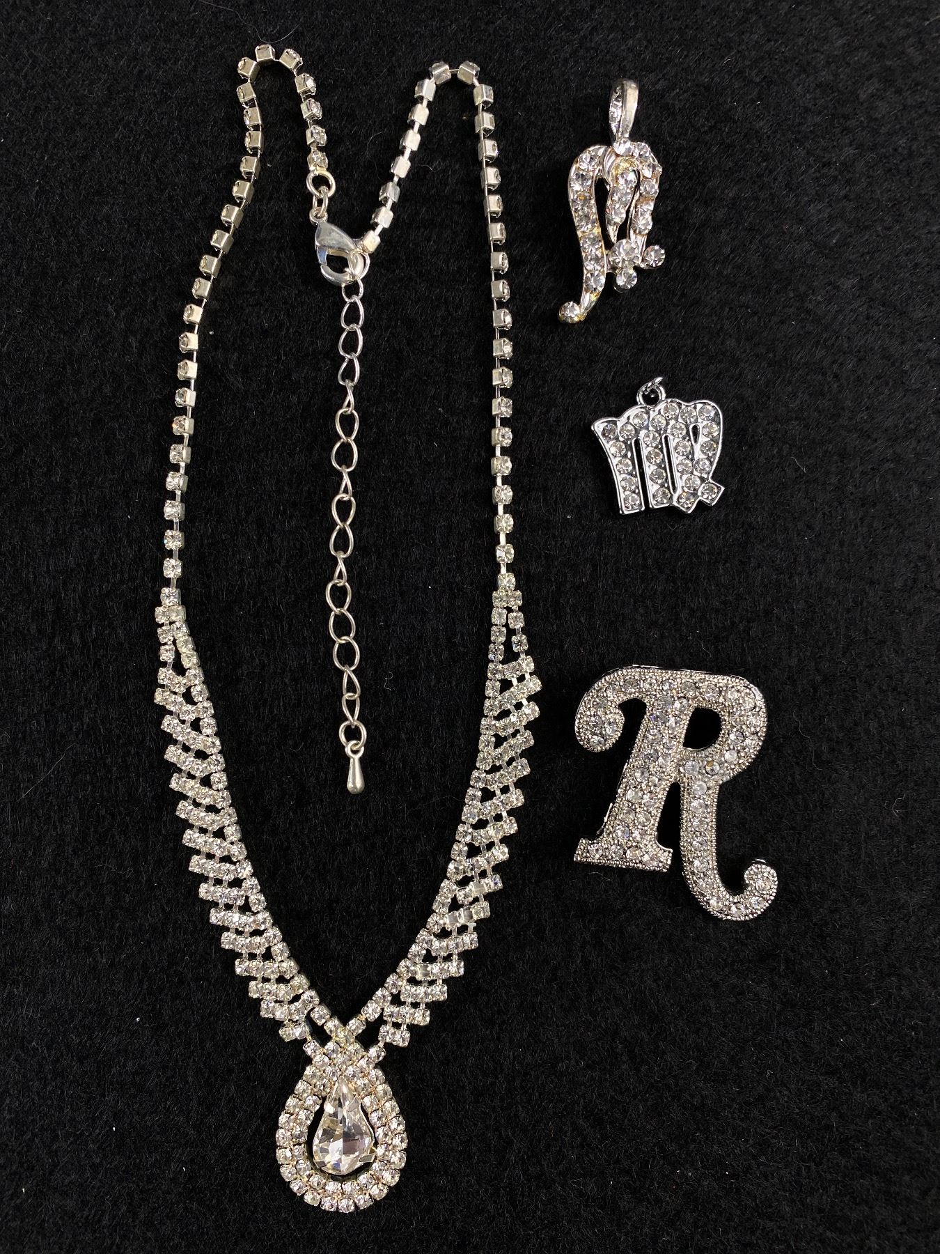 Lovely Silver Plated w/ Rhinestones Choker Necklace 2 Pendants + Brooch