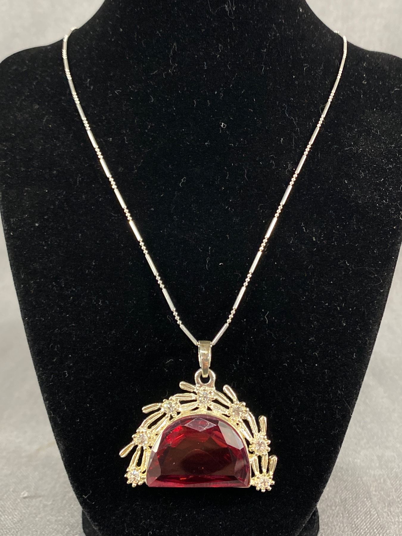 Lovely Silver with Amber Beads Tasselled Necklace