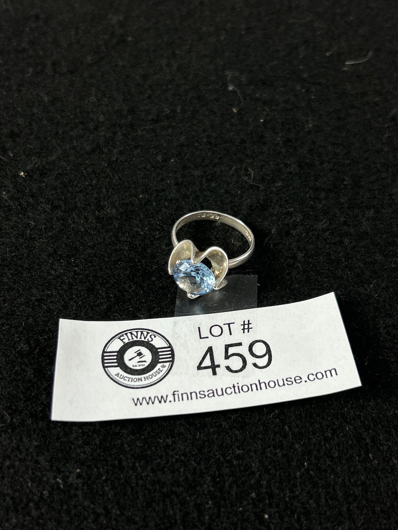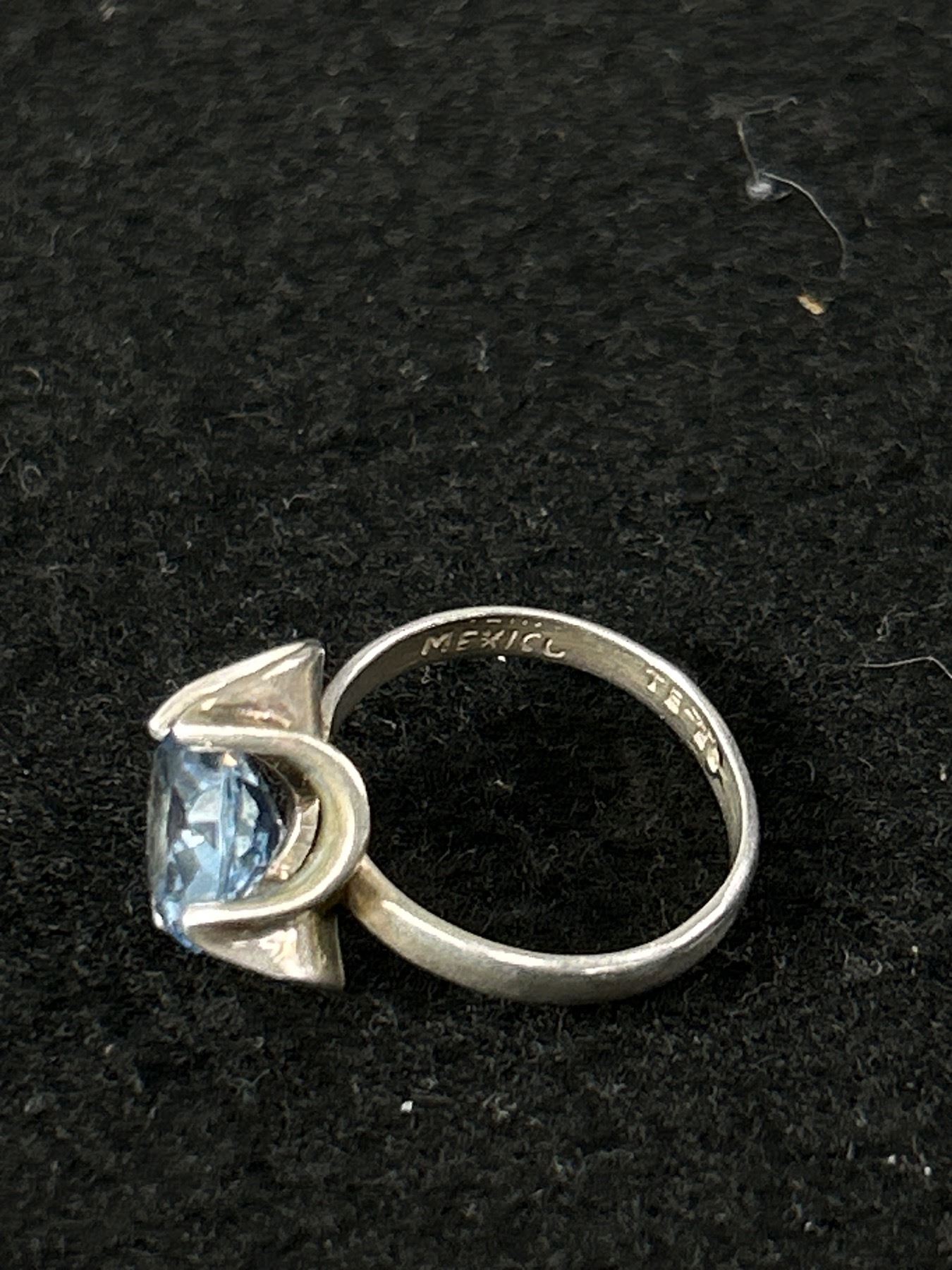 Lovely Sterling Silver with Blue Topaz Stone Ring Marked Mexico TE-20 925 Size 7