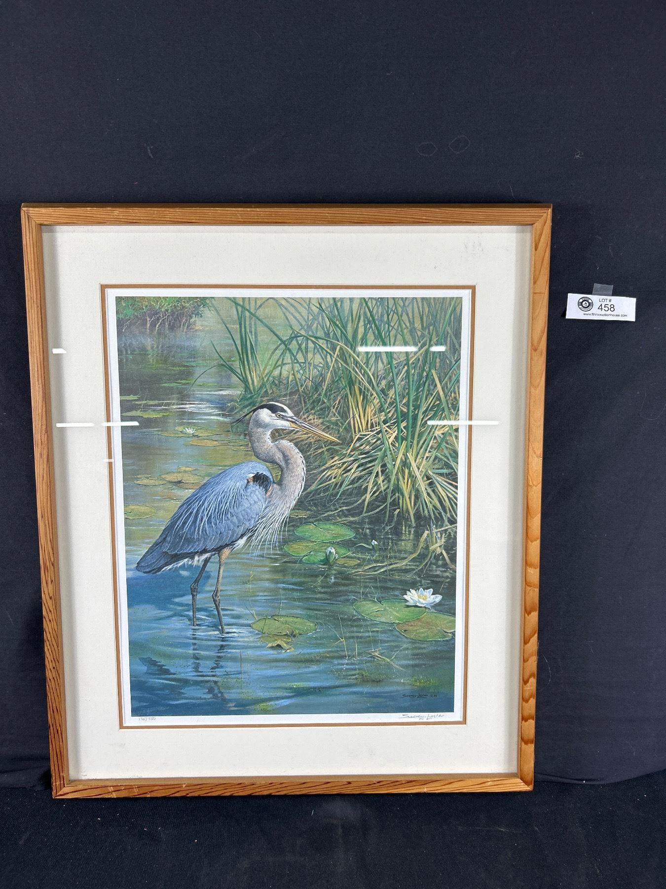 Ltd Ed 175/950 Framed Print "Lone Fisherman - Great Blue Heron" By John Seerey-Lester. Approx. 19" x 23"