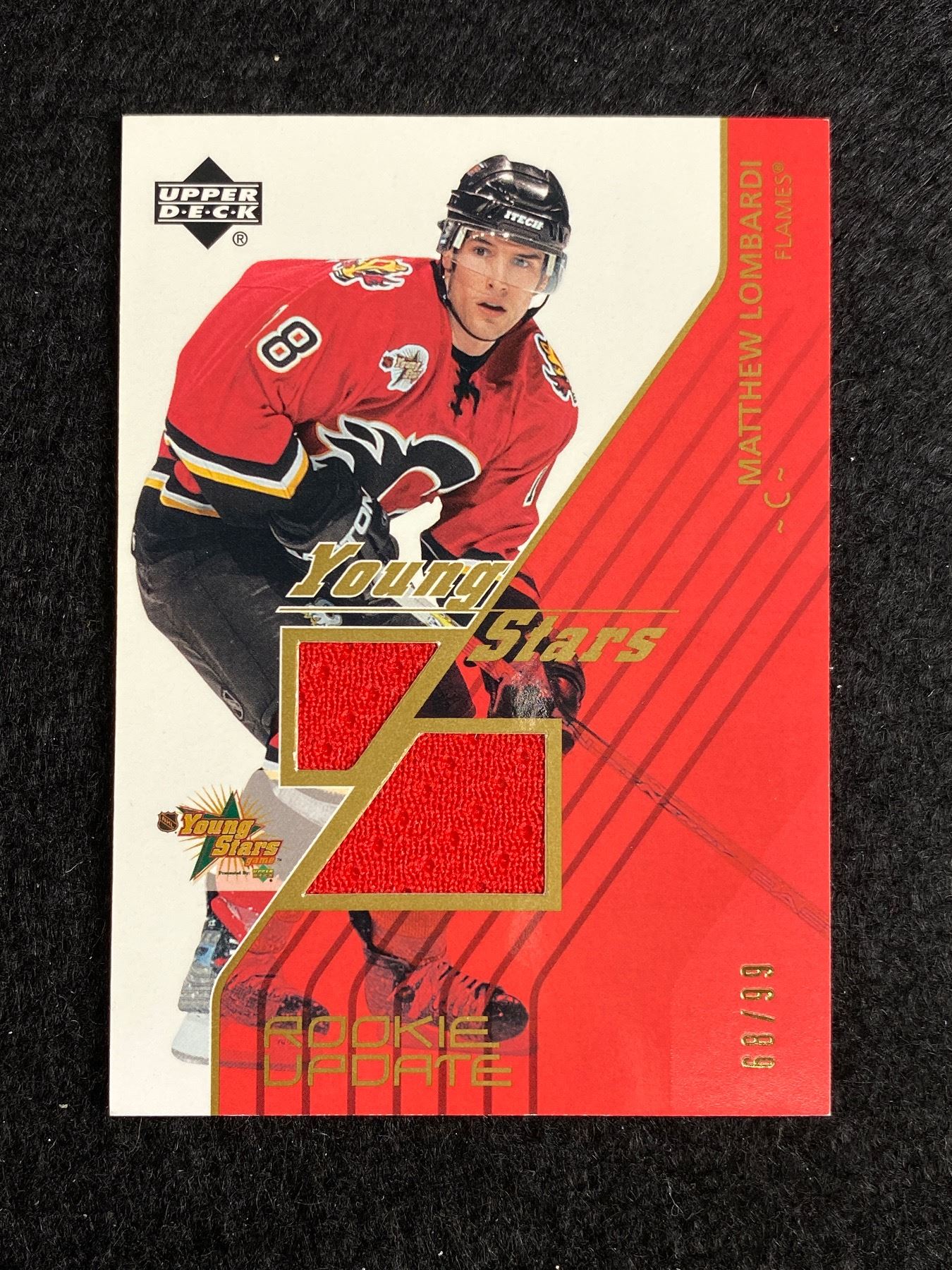 Ltd Ed 66/99 2004 UD Young Stars Matthew Lombardi Rookie Game Worn Jersery NHL Card