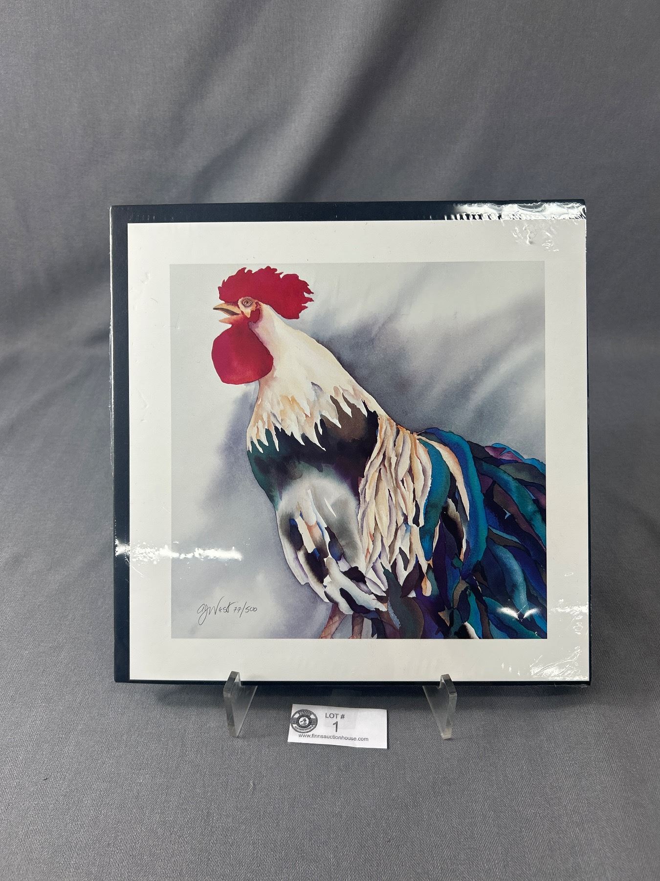Ltd Ed 77/500 "Happy New Year" Rooster Print By A.J. West. Approx. 11" x 11"