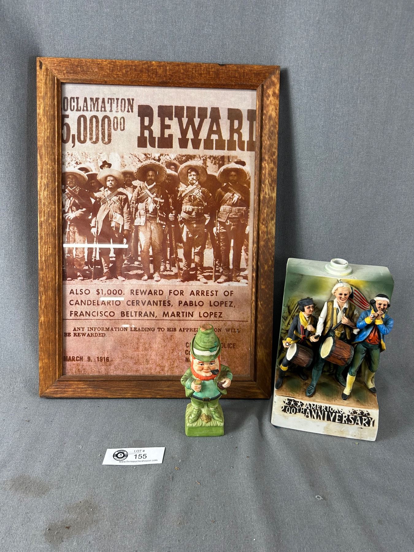 Ltd Ed Vintage McCormic Musical Decanter "America's 200th Anniversary" ,1995 Hoffman Mini Decanter & Framed Repro Wanted Poster