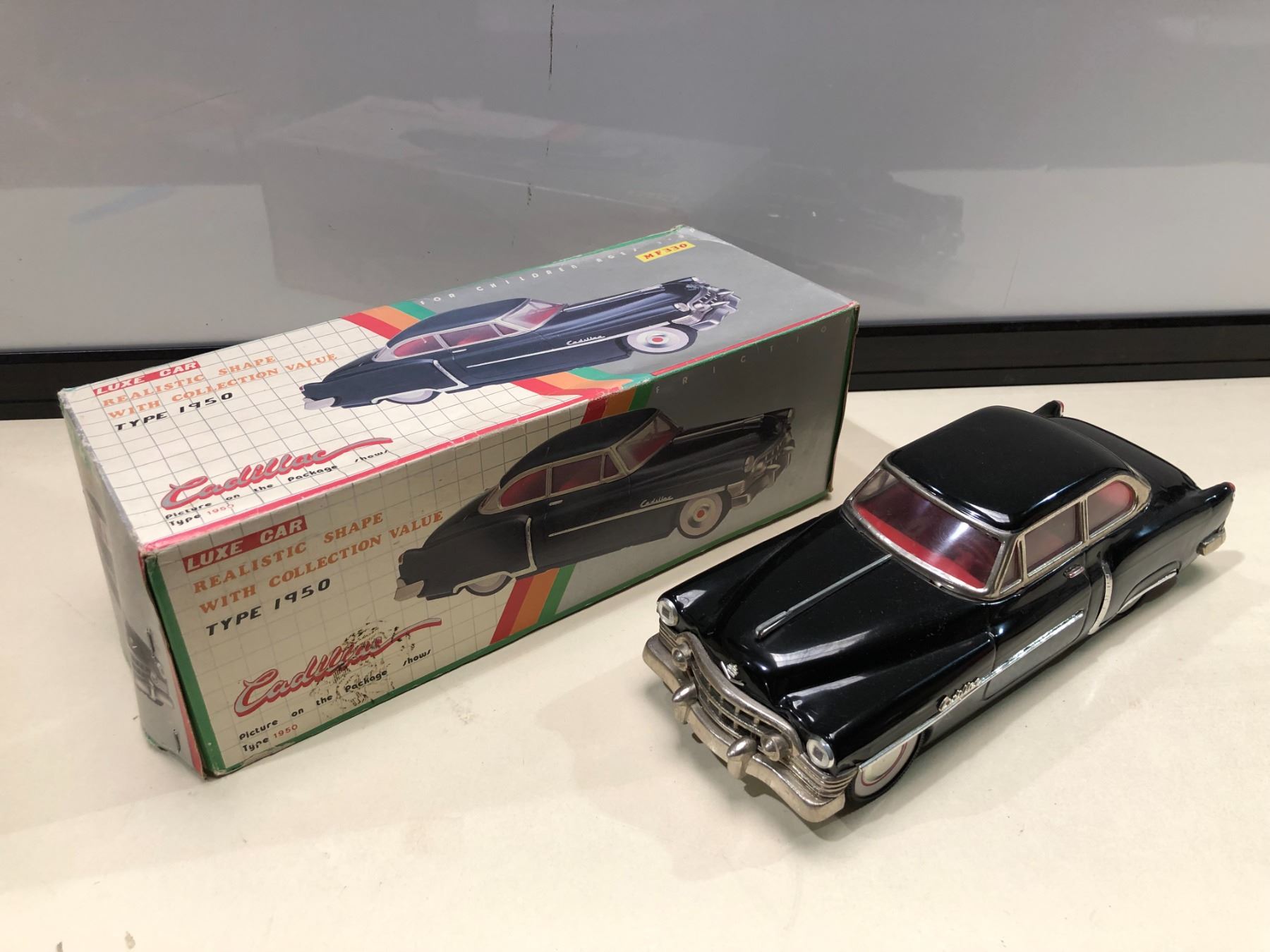 Luxe car die cast metal 1950 Cadillac friction toy car w/original box
