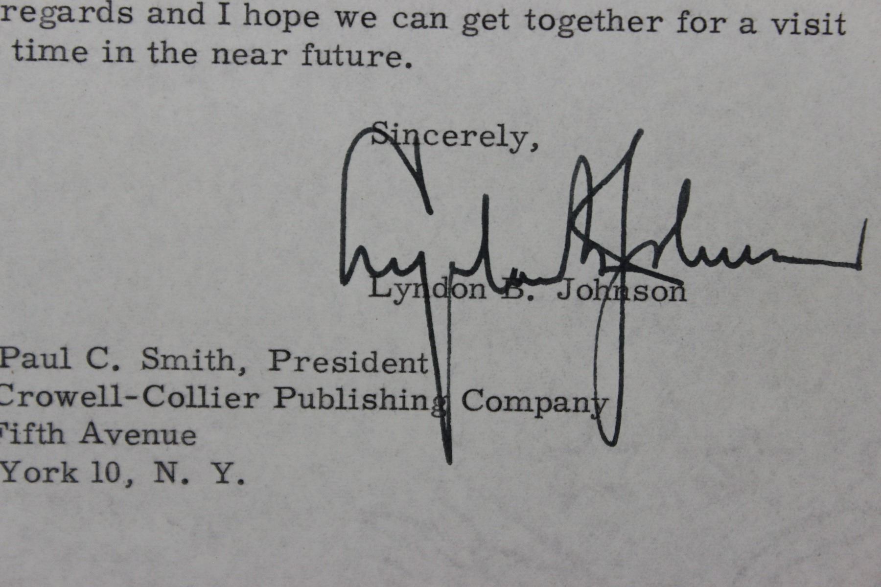 One page signed "Lyndon Johnson" as Senate Democratic Leader, 6 7/8" x 6"; June 25, 1955.