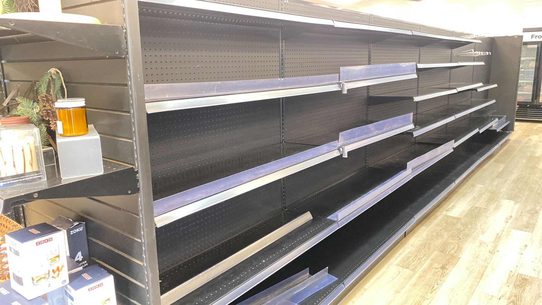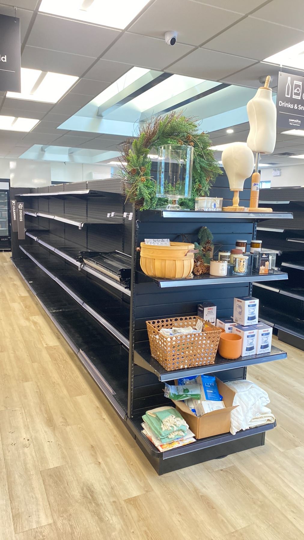 MAC RAC MERCHANDISING COMMERCIAL DOUBLE SIDED GROCERY SHELVING SYSTEM APPROX 24'L X 3'W X 6'H * CONTENTS NOT INCLUDED * *REQUIRES 2 PEOPLE & TOOLS FOR REMOVAL*