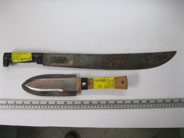 MACHETE, WOODEN HANDLED KNIFE WITH SHEATH