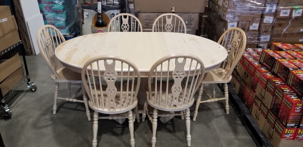 MADE IN CANADA DINING TABLE WITH 6 CVHAIRS AND EXTENSION