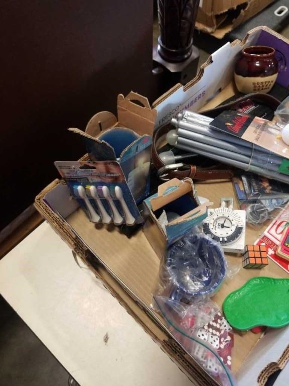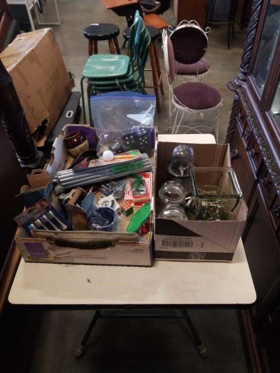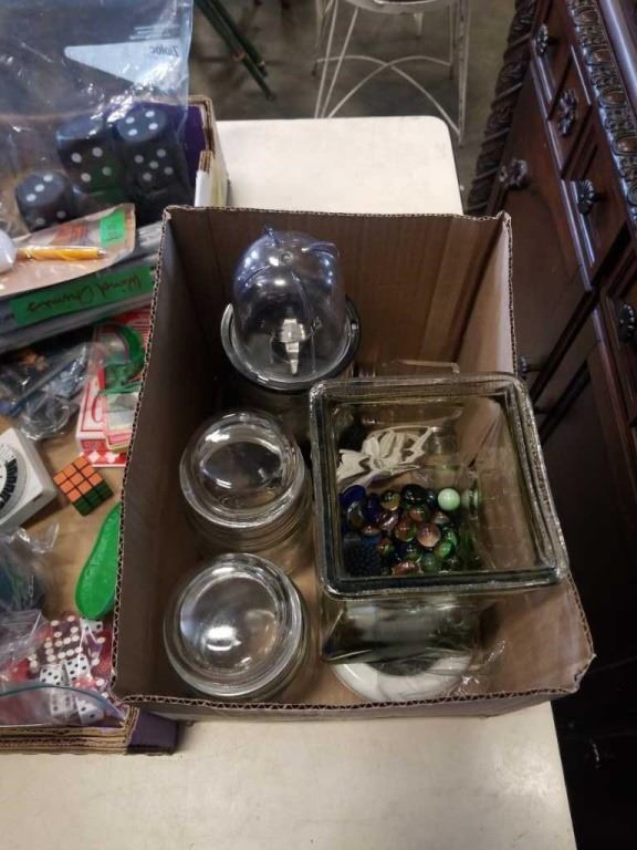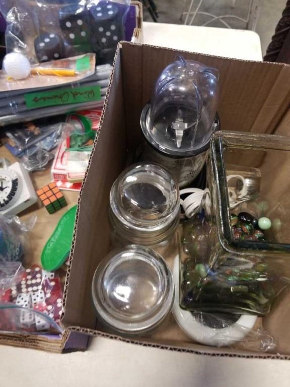 MAGIC BULLET, GLASS VASE OF BEADS AND TRAY OF ESTATE GOODS