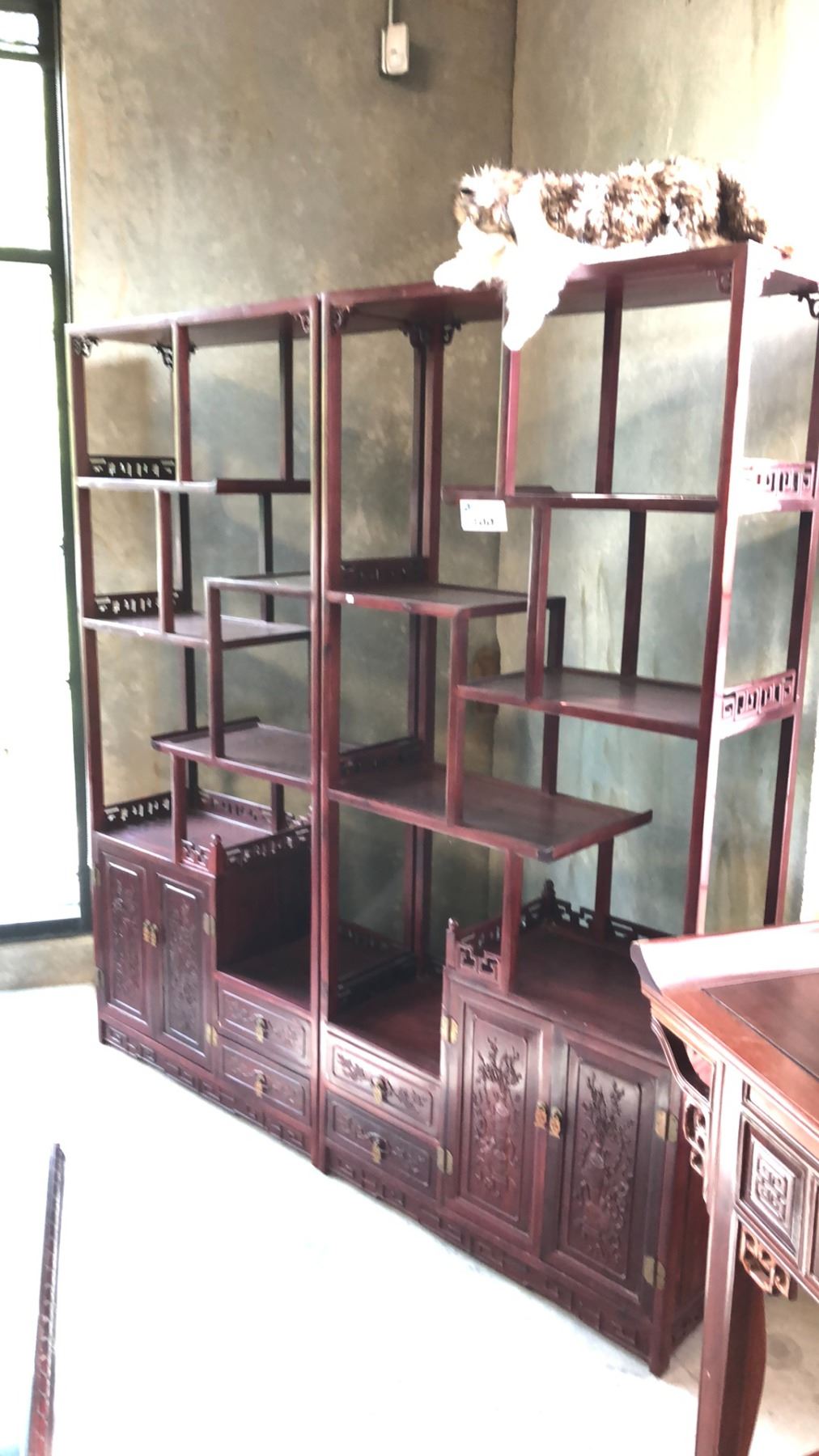 MAHOGANY FINISH WALL UNIT 72X76X14"