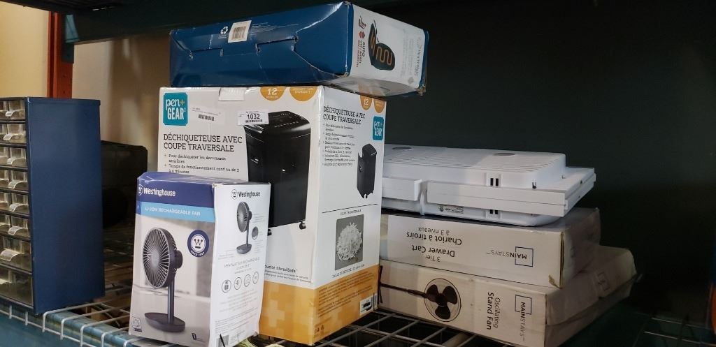 MAINSTAYS FAN, HEALTHMATE HEATED CUSHION, PAPER SHREDDER AND FANS