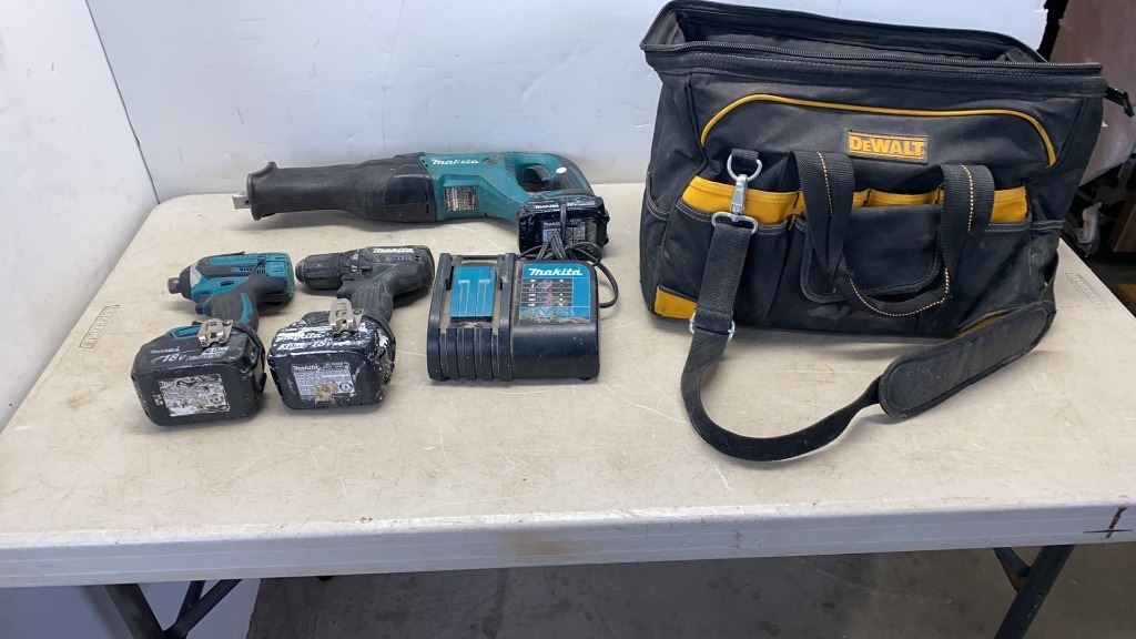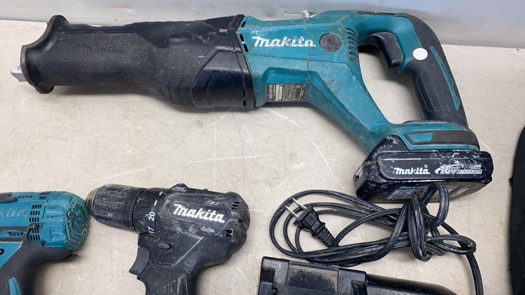 MAKITA 3 PC DRILL, DRIVER AND SAWZALL SET WITH 3 BATTERIES AND CHARGER TESTED AND WORKING