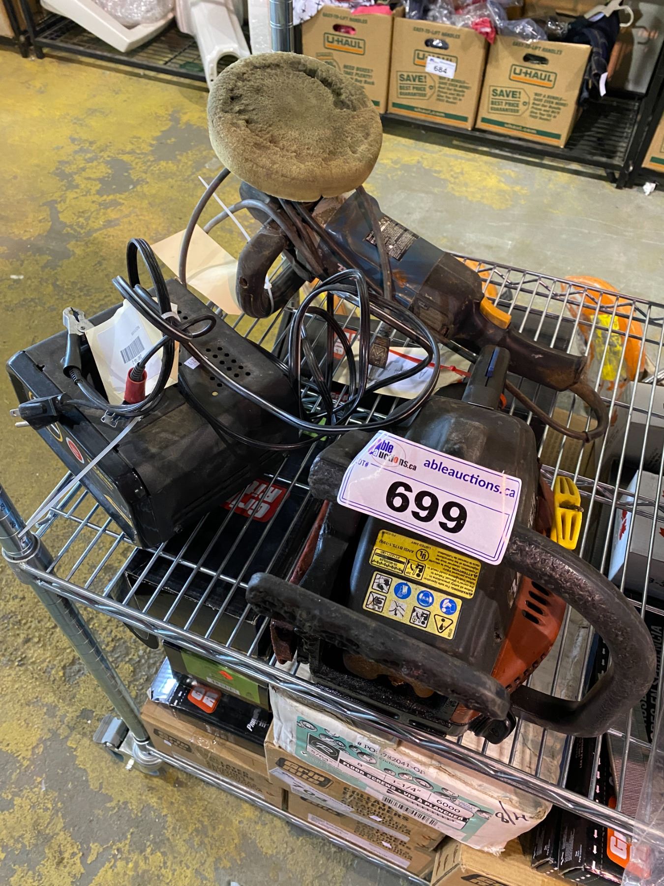 MAKITA 7" GRINDER,SCHUMACHER 10AMP CHARGE & CHAINSAW BODY