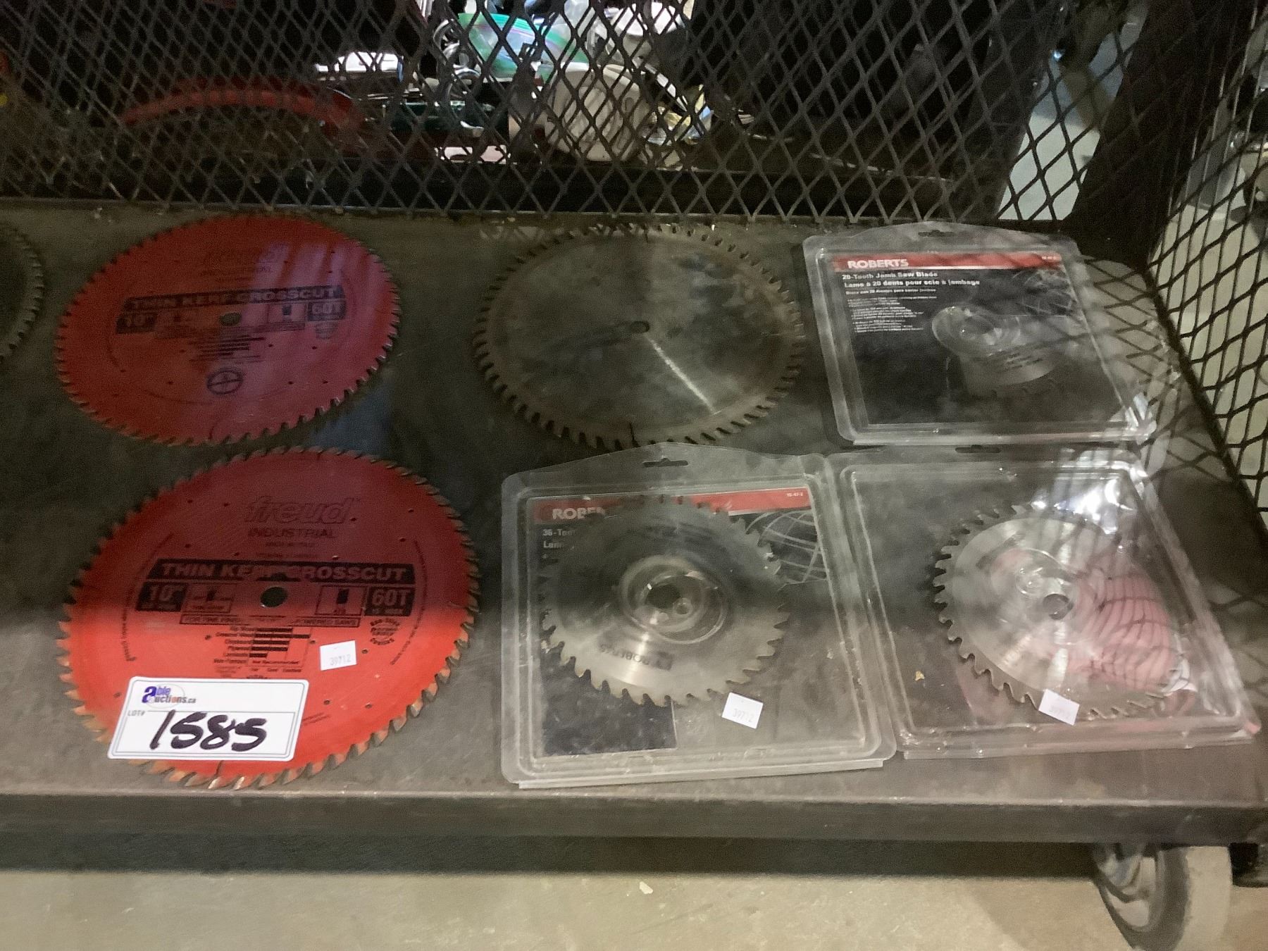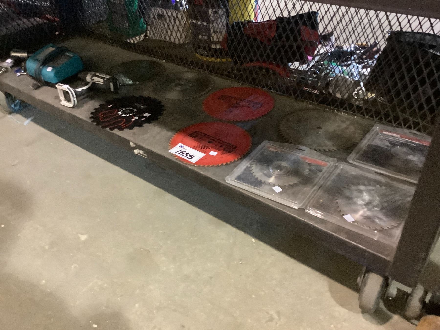 MAKITA CORDLESS DRILL, MAKITA BATTERY CHARGER, HUSKY AIR HAMMER, ASSORTED SAW BLADES