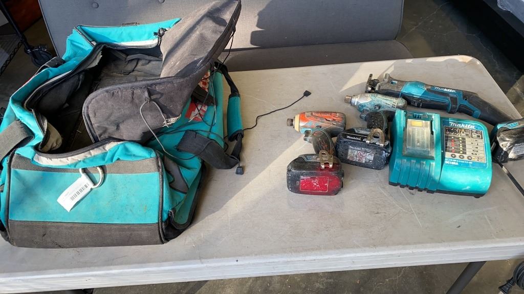 MAKITA CORDLESS TOOL SET - 2 IMPACT GUNS, SAWZALL, 3 BATTERIES AND CHARGER - TESTED AND WORKING