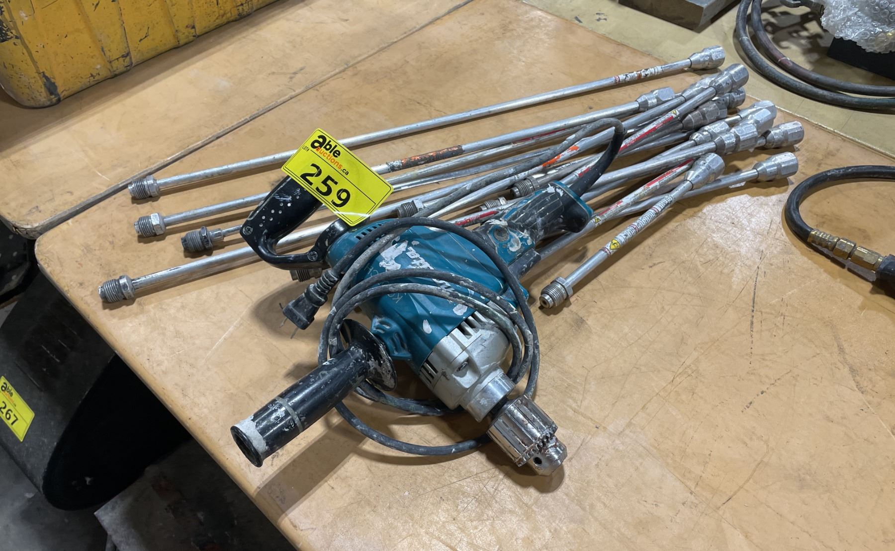 MAKITA DS4012 1/2" ELECTRIC DRILL & 15 ASSORTED SIZE COMMERCIAL ALUMINUM PAINT SPRAYER INSERT WANDS
