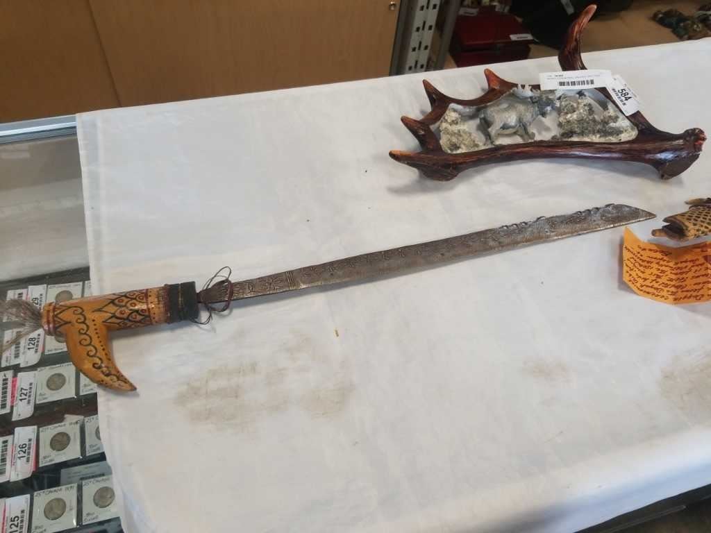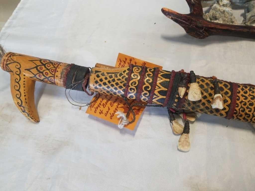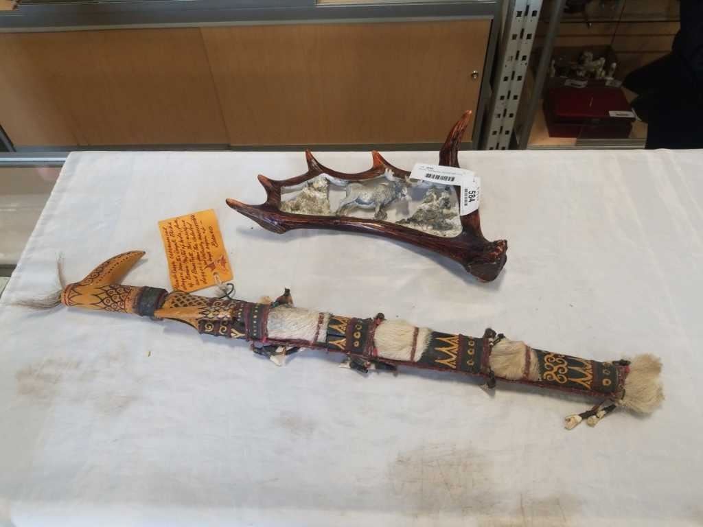 MANDU CEREMONIAL DAGGER AND CAST MOOSE DECORATION