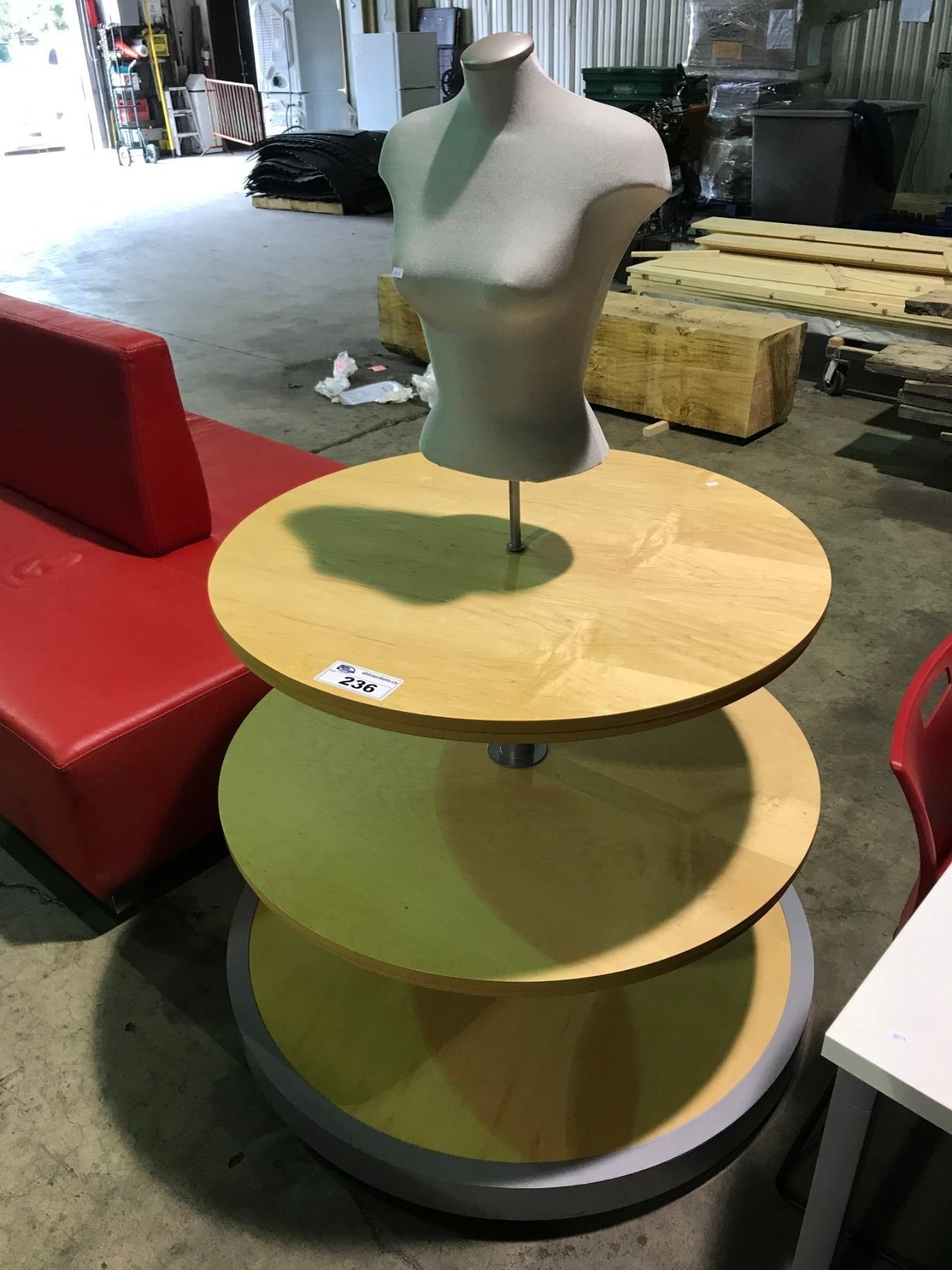 MAPLE 3 TIER 36" ROUND CLOTHING DISPLAY STAND DIMENSIONS: 36" ROUND X 62"H