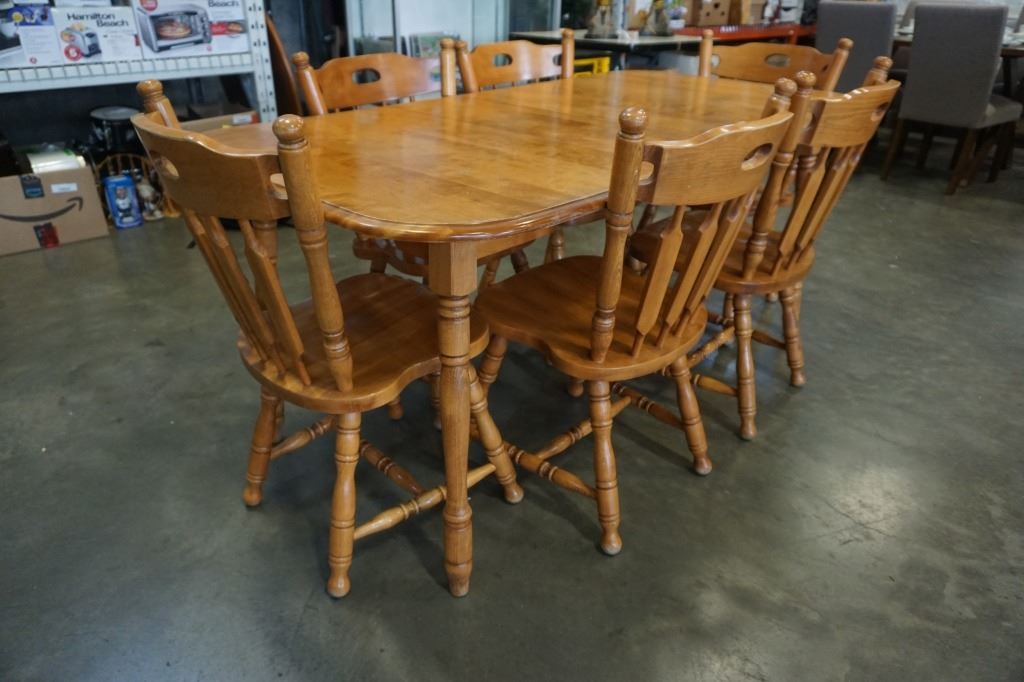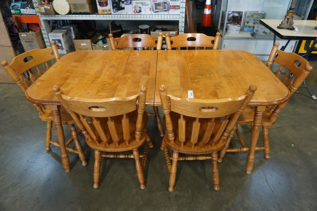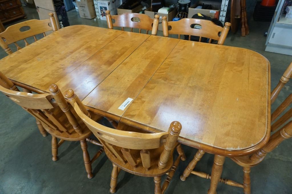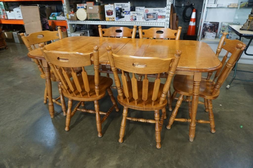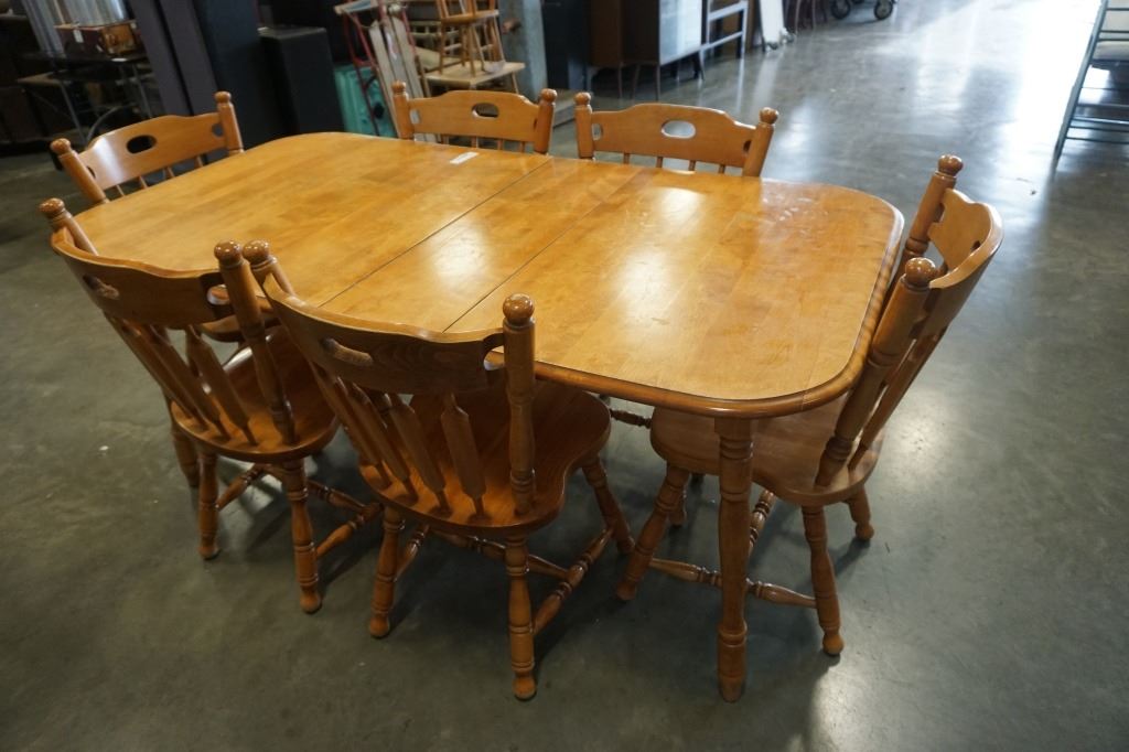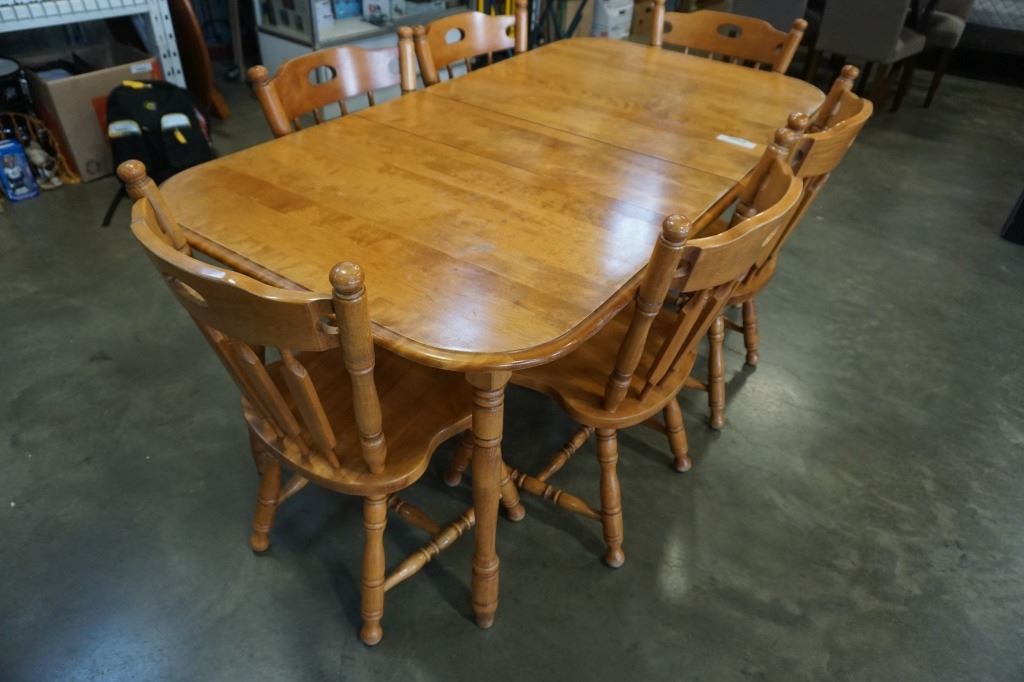 MAPLE DINING TABLE WITH 2 LEAFS AND 6 CHAIRS