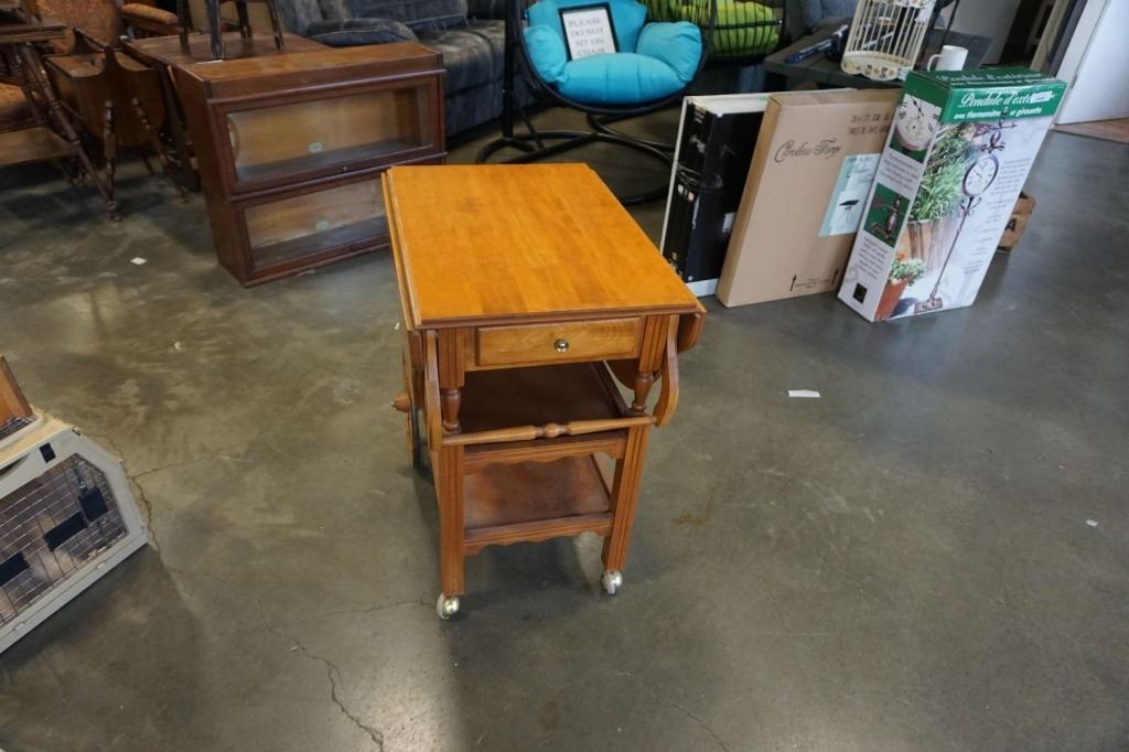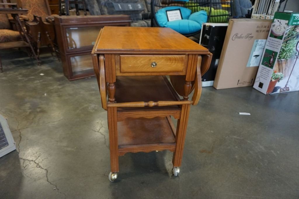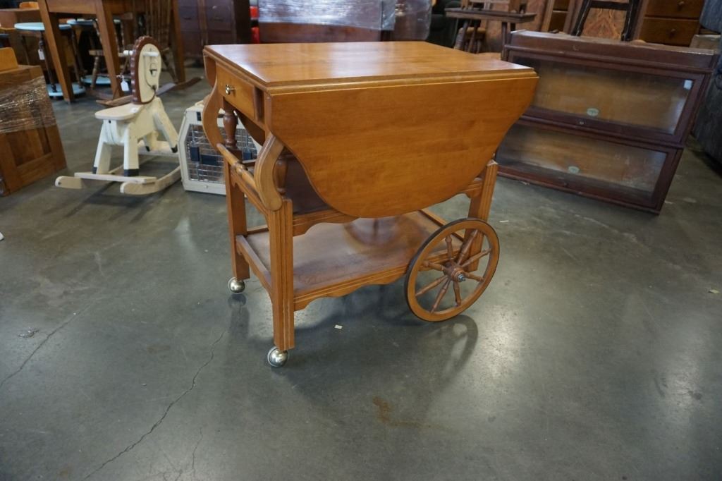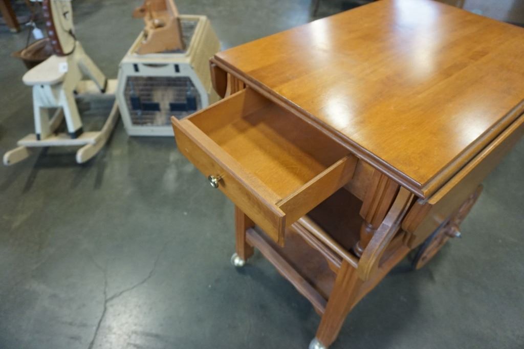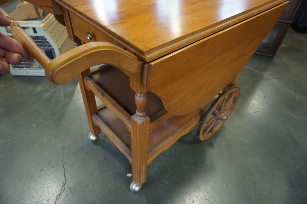 MAPLE TEA TROLLEY W/ DROP SIDES AND DRAWER