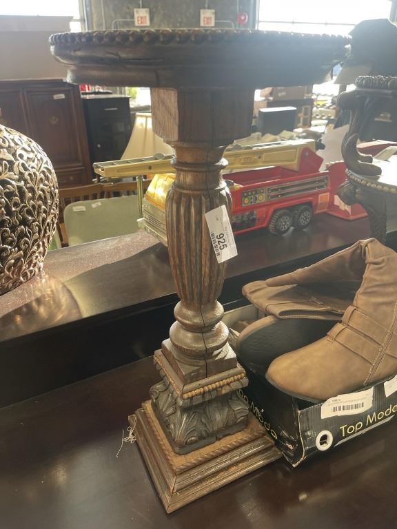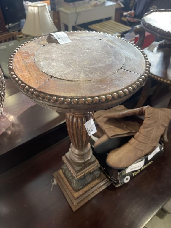 MARBLE TOP PLANTSTAND WITH CARVED BASE