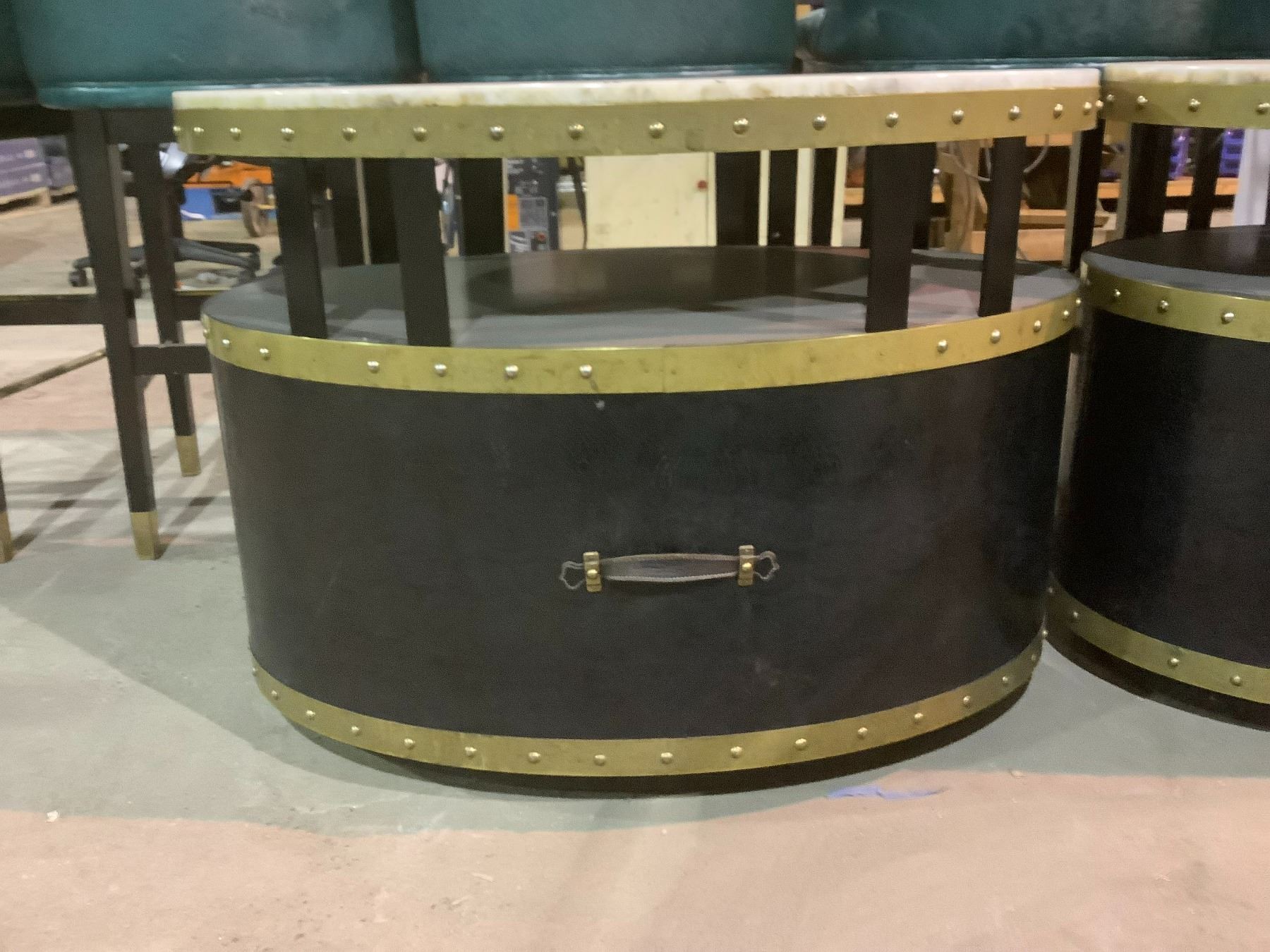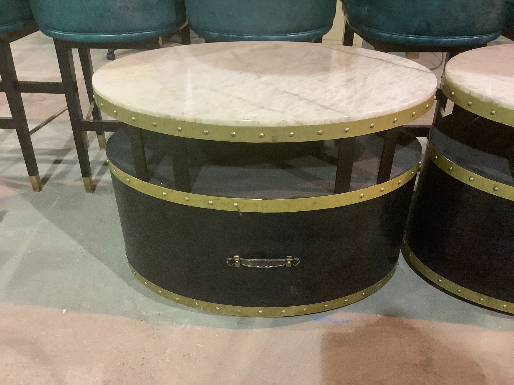 MARBLE TOP, WOOD & BRASS COFFEE TABLE 36 X24
